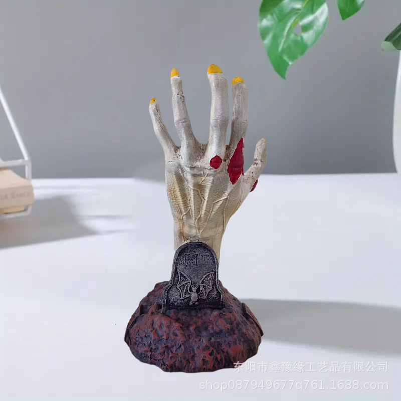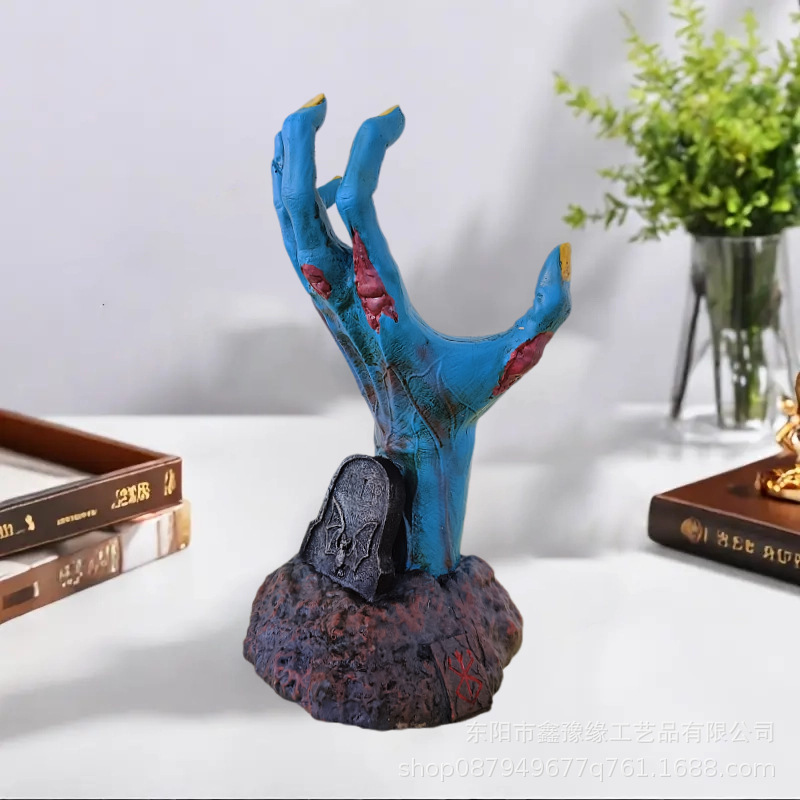 국경 간 새로운 할로윈 장식 죽음의 손 수지 공예 장식품 스위치 게임 패드 데스크탑 스탠드