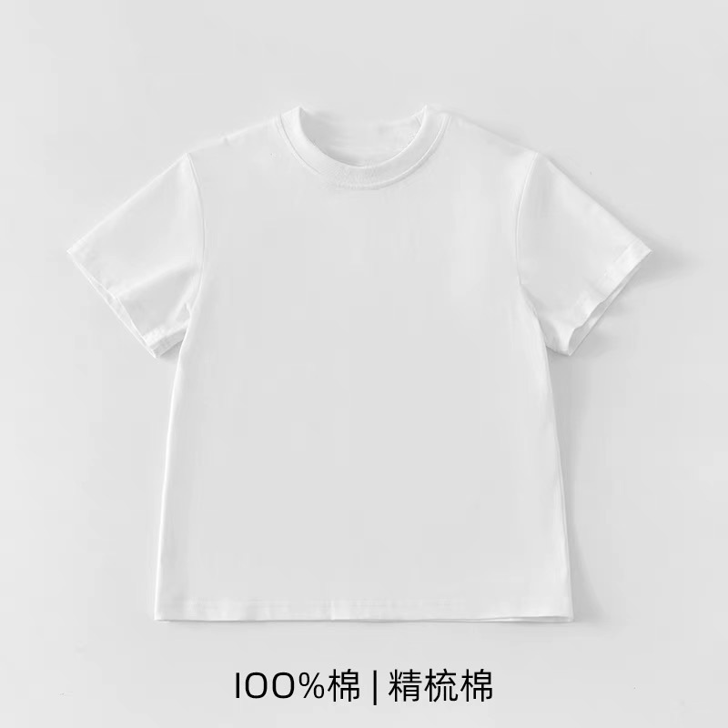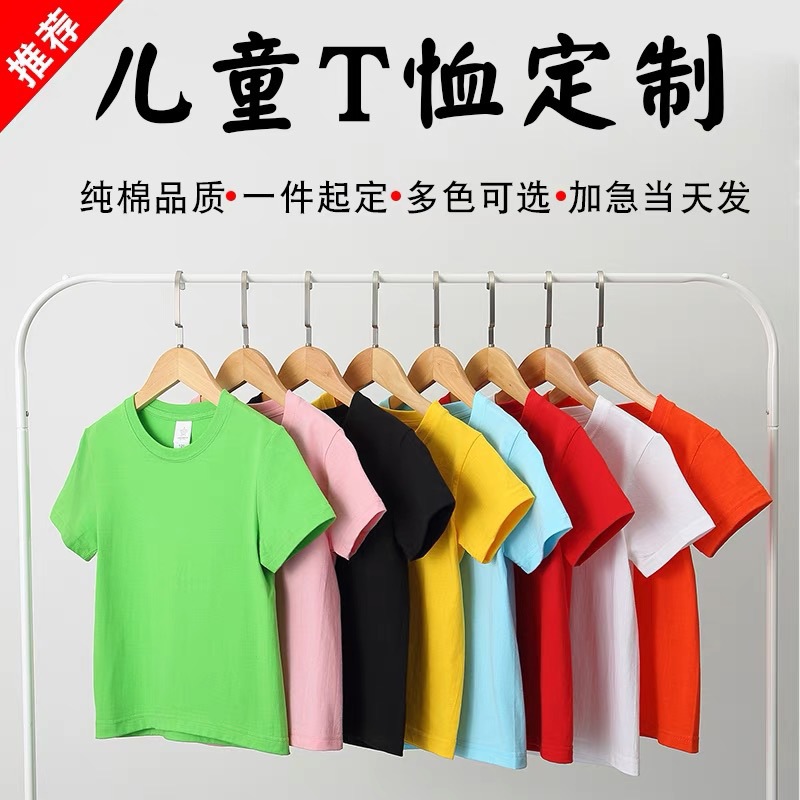 어린이 티셔츠 커스텀 피규어 200g 빗질면 남녀 승무원 목 짧은 소매 도매 단색 부모-자식 티셔츠스토어 가기