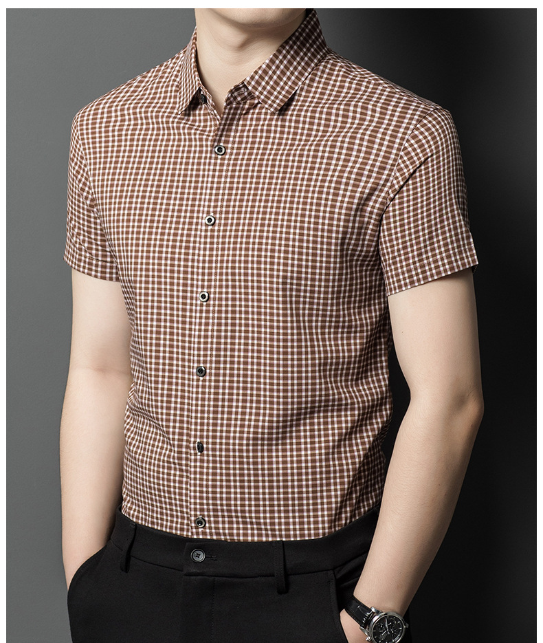 2025 년 여름 새로운 도착 젊은 및 중년 남성 격자 무늬 반팔 셔츠 유행 캐주얼 얇은 우아한 카디건 남성용 셔츠스토어 가기
