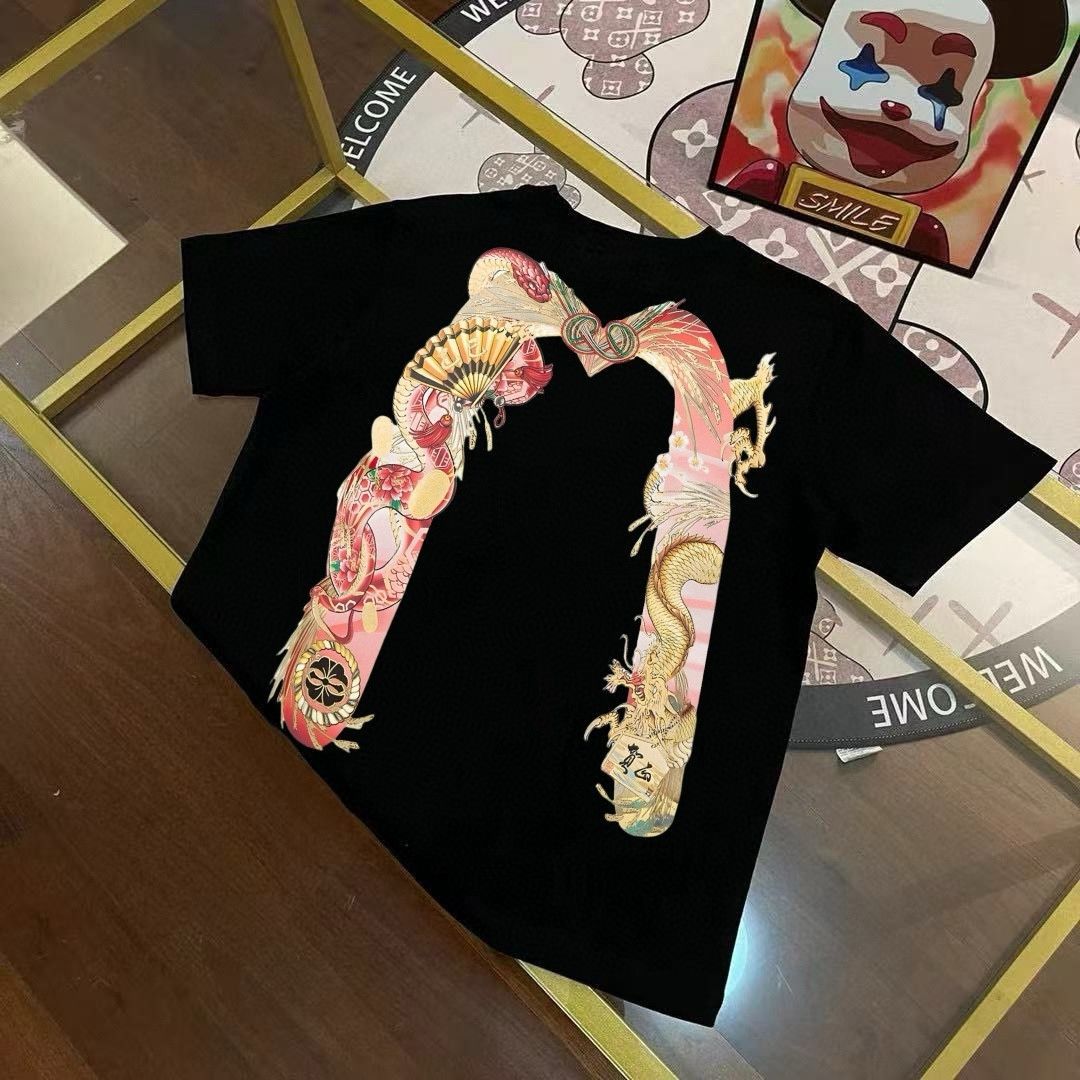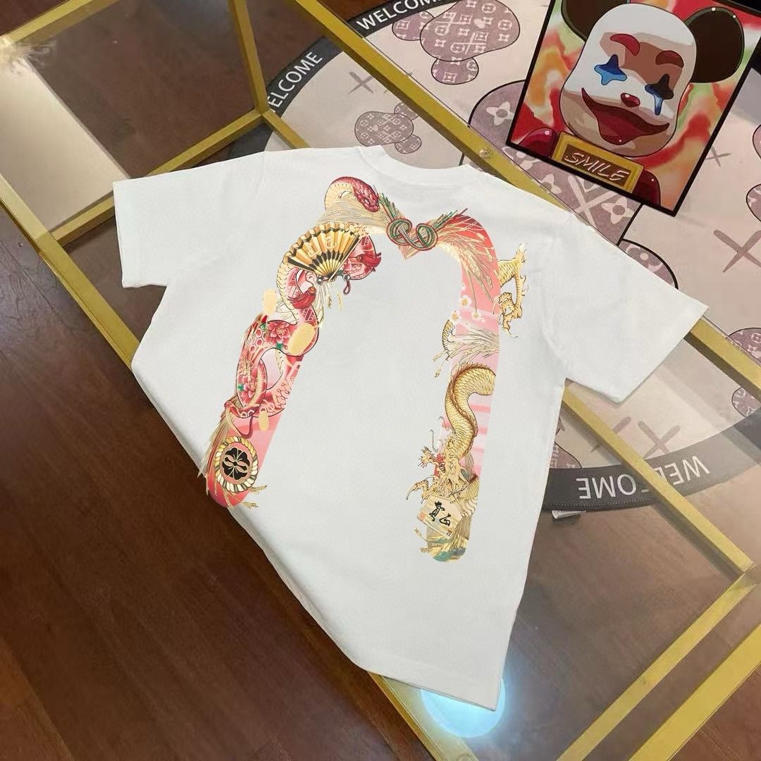 봄과 여름 2025 새로운 패션 브랜드 남성 EV 텡 뱀과 드래곤 편지 큰 M 인쇄 캐주얼 느슨한 둥근 목 짧은 소매 티셔츠