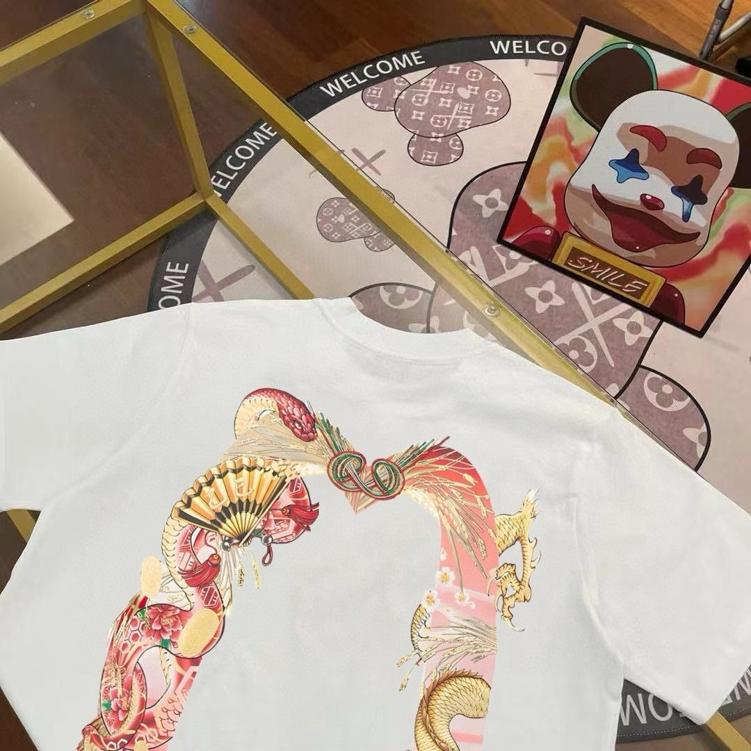 봄과 여름 2025 새로운 패션 브랜드 남성 EV 텡 뱀과 드래곤 편지 큰 M 인쇄 캐주얼 느슨한 둥근 목 짧은 소매 티셔츠스토어 가기