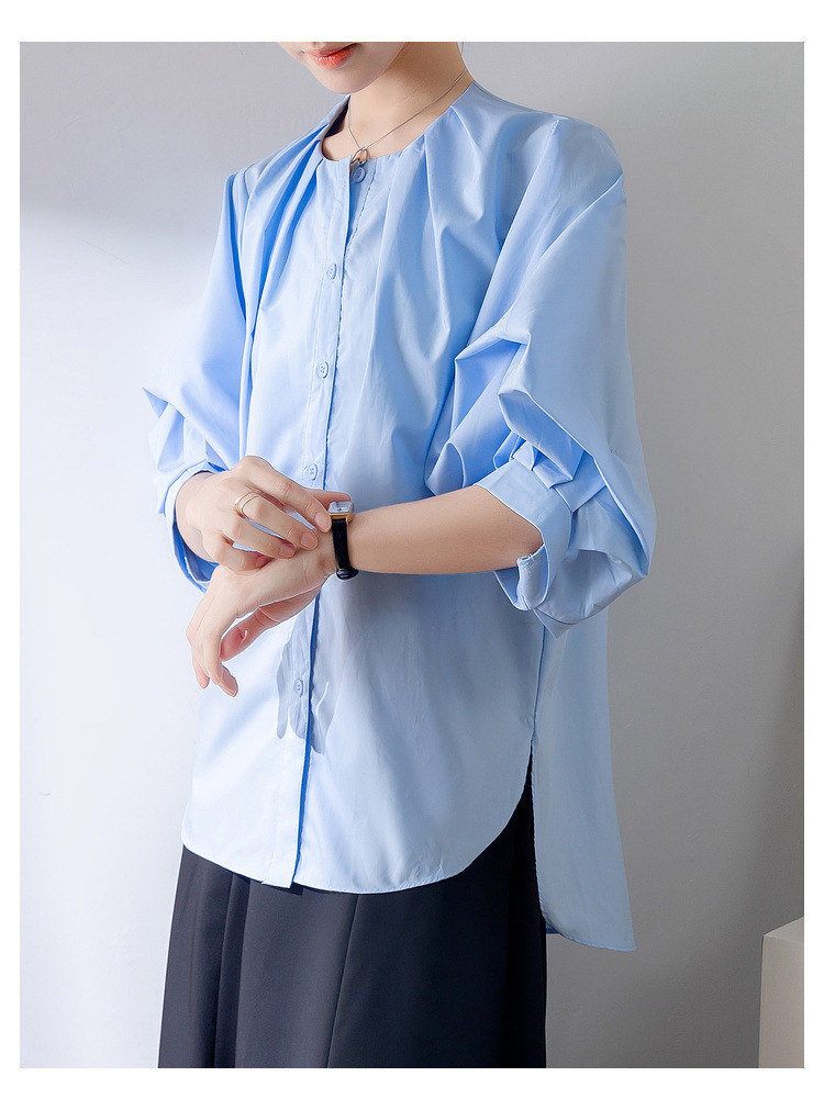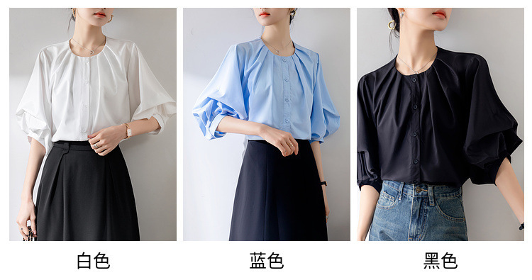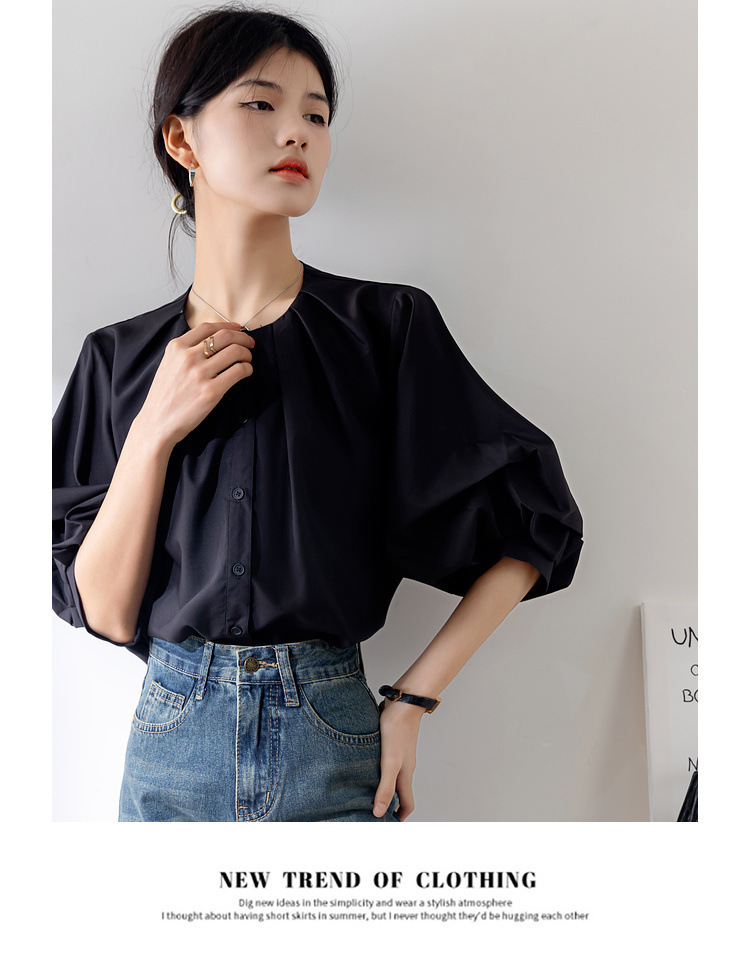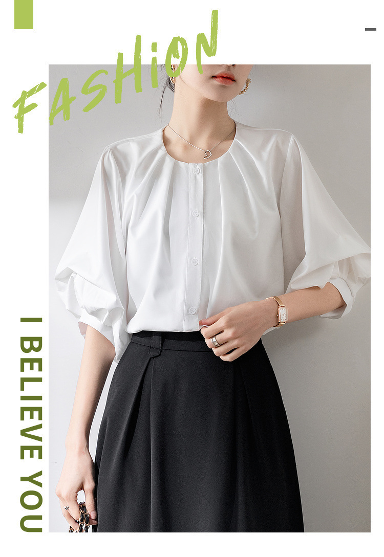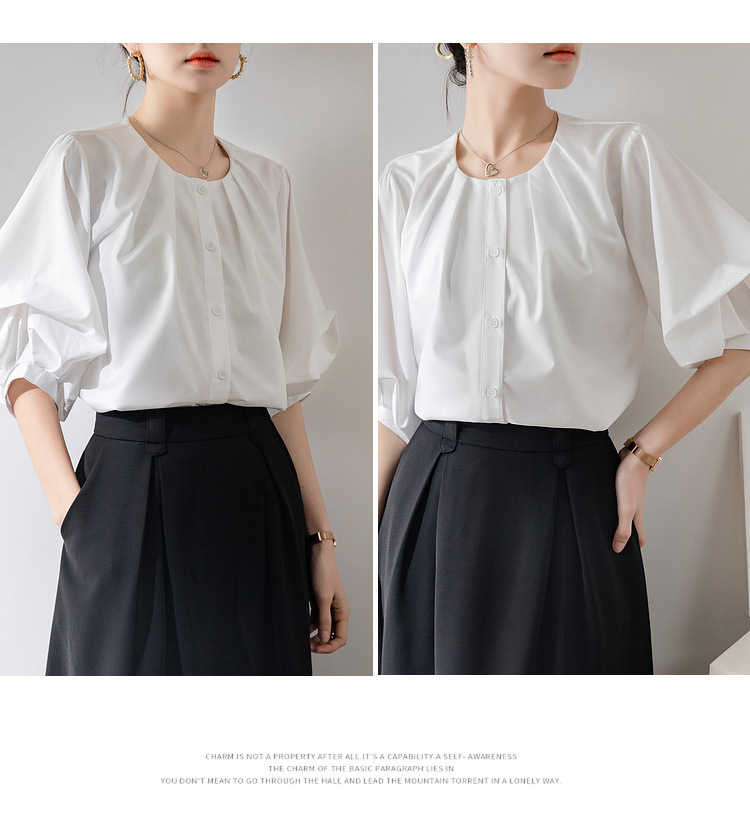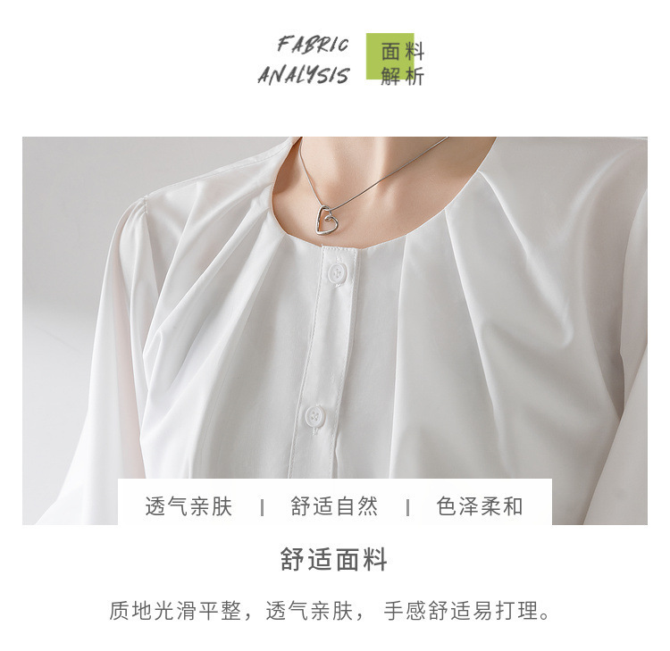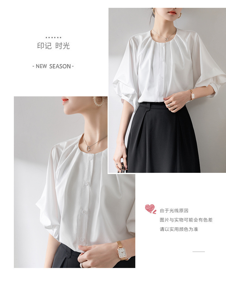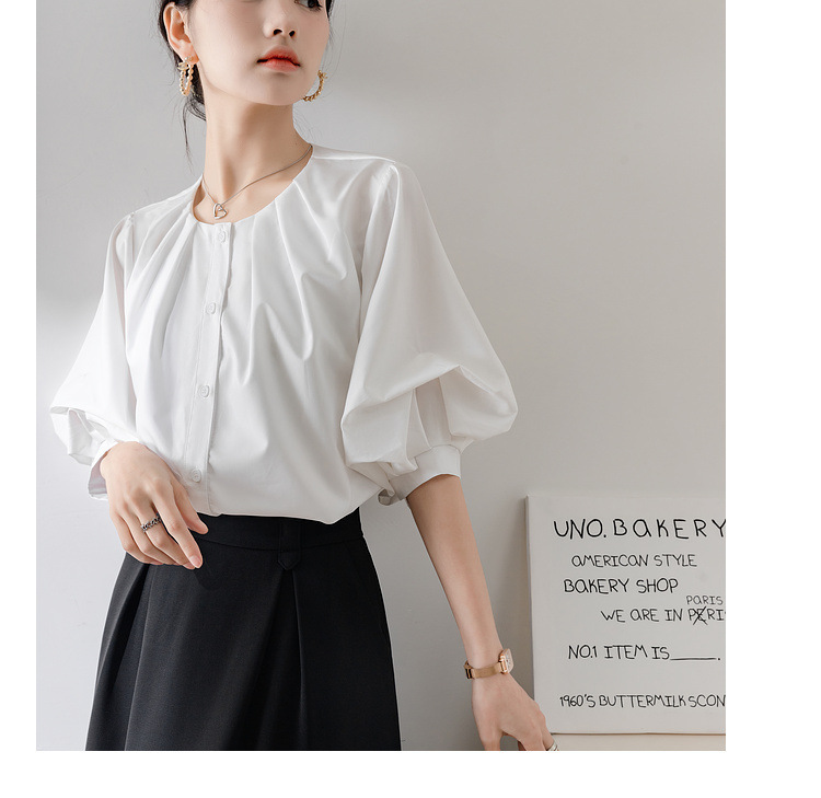 프랑스 레트로 퍼프 슬리브 화이트 셔츠 여성의 2025 새로운 여름 느슨한 라운드 넥 탑 디자인 틈새 셔츠
