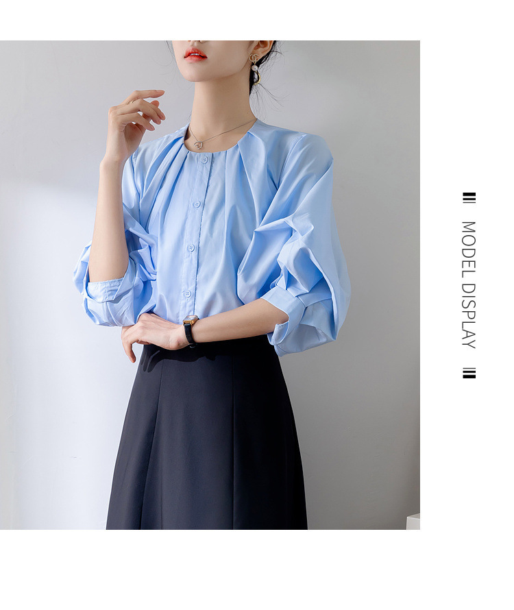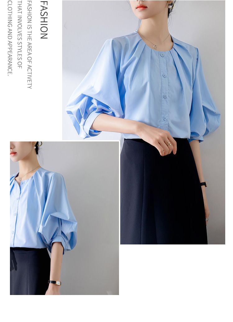 프랑스 레트로 퍼프 슬리브 화이트 셔츠 여성의 2025 새로운 여름 느슨한 라운드 넥 탑 디자인 틈새 셔츠스토어 가기