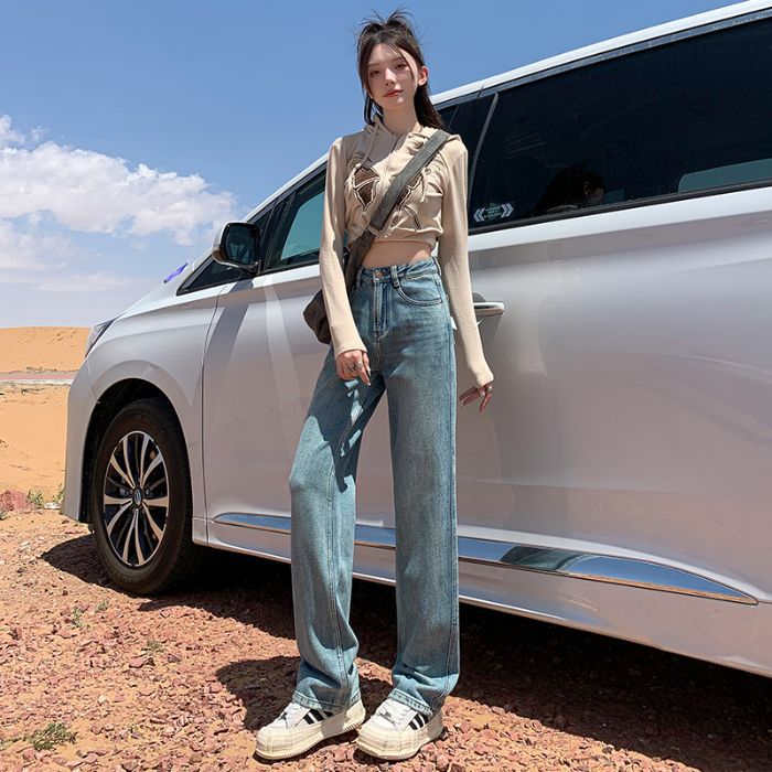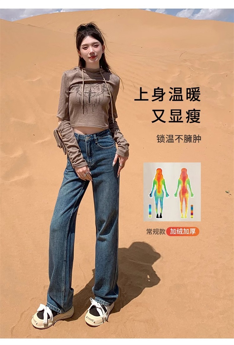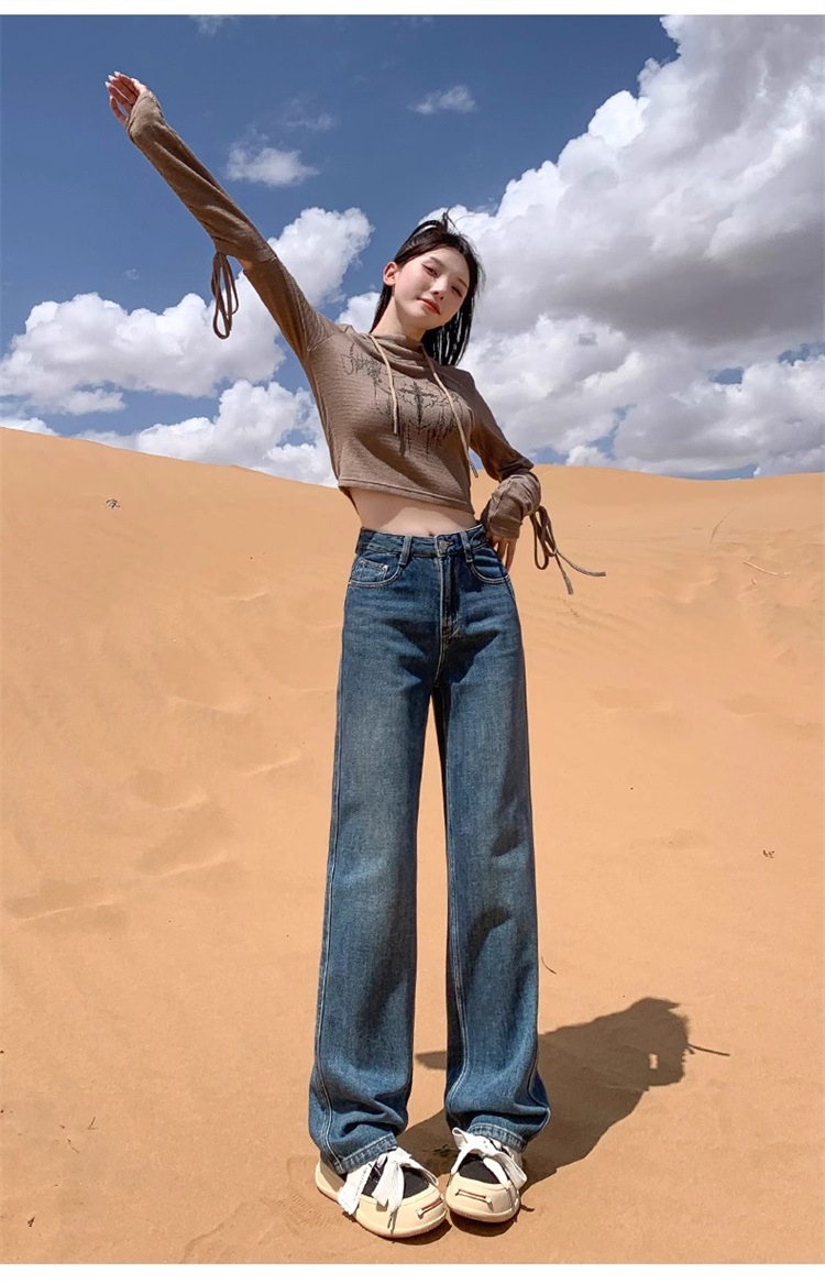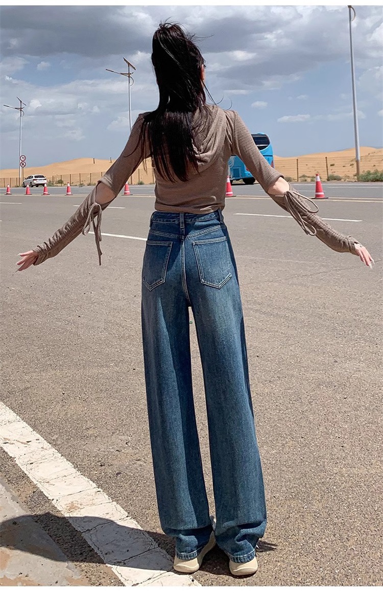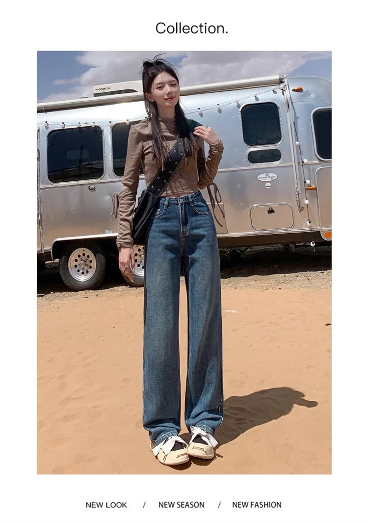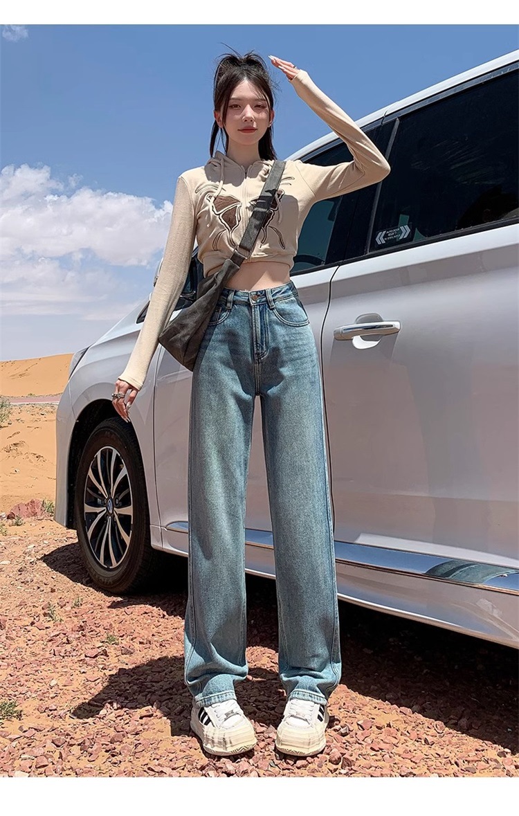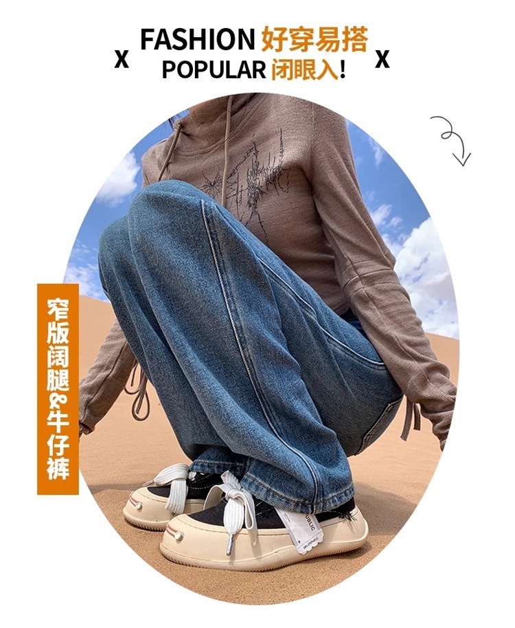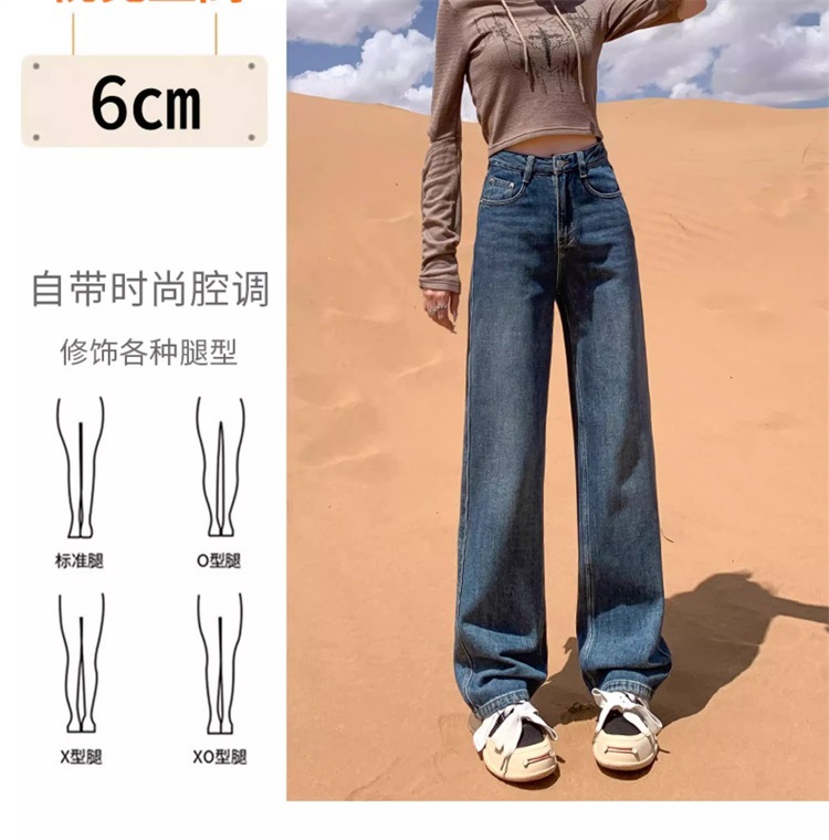 느슨한 넓은 다리 청바지 여성의 봄과 가을 작은 높은 허리 슬리밍 배 모양의 몸 두꺼운 다리 넓은 엉덩이 좁은 판 직선 다리 바지스토어 가기