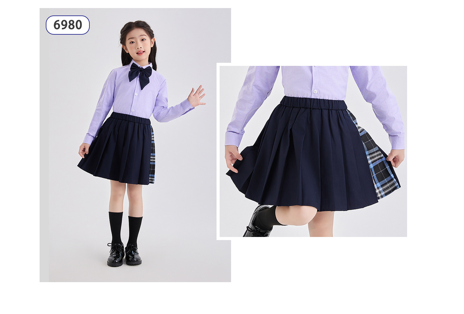 어린이 학교 제복 치마 여아 짧은 치마 네이비 학교 제복 스커트 눈부심 방지 스커트 면화 학생 원피스스토어 가기