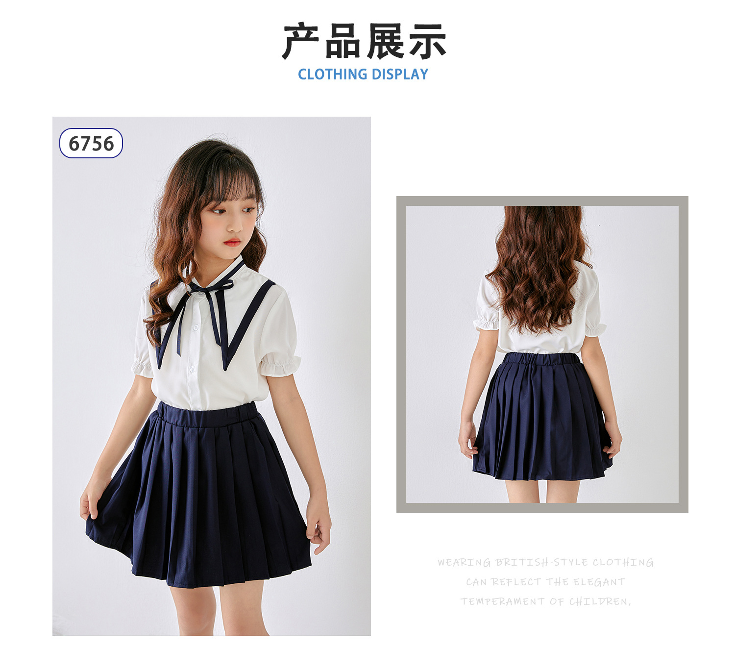어린이 학교 제복 치마 여아 짧은 치마 네이비 학교 제복 스커트 눈부심 방지 스커트 면화 학생 원피스