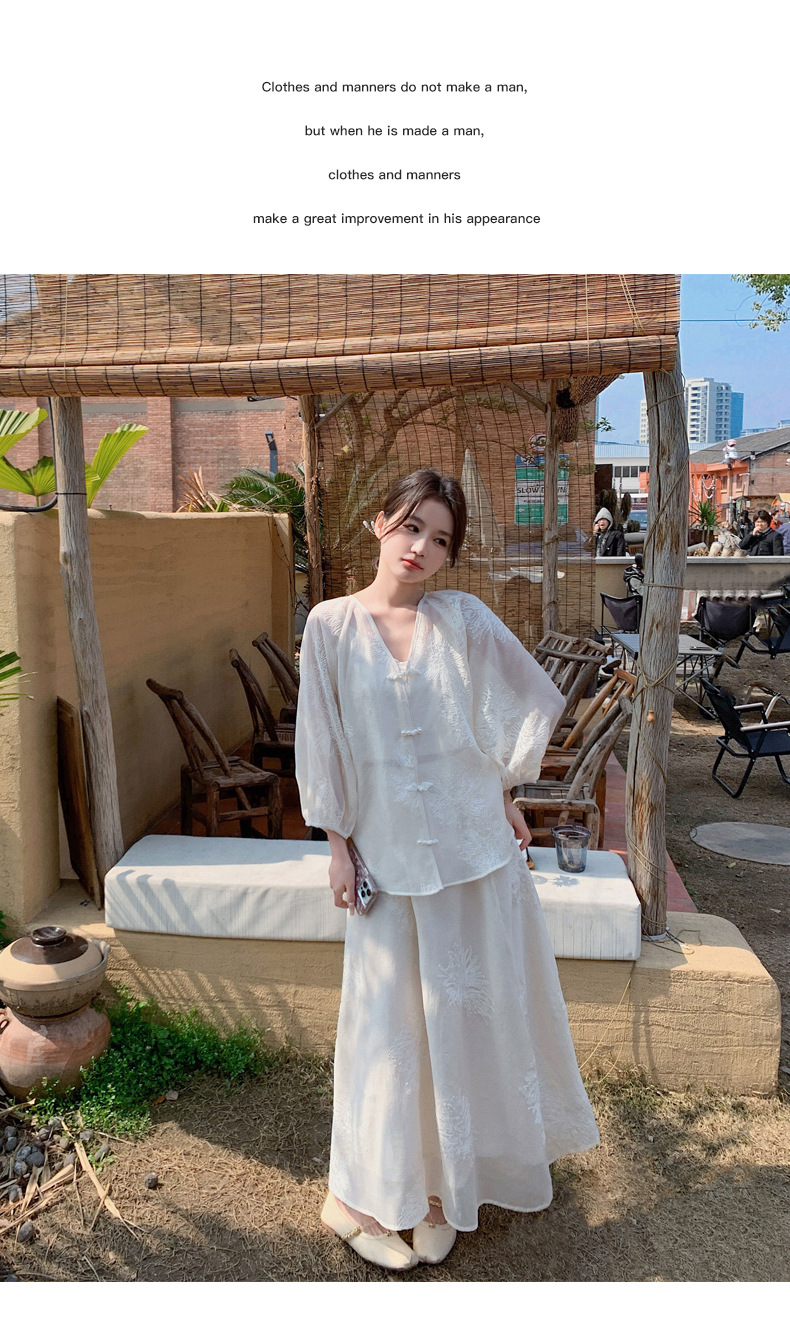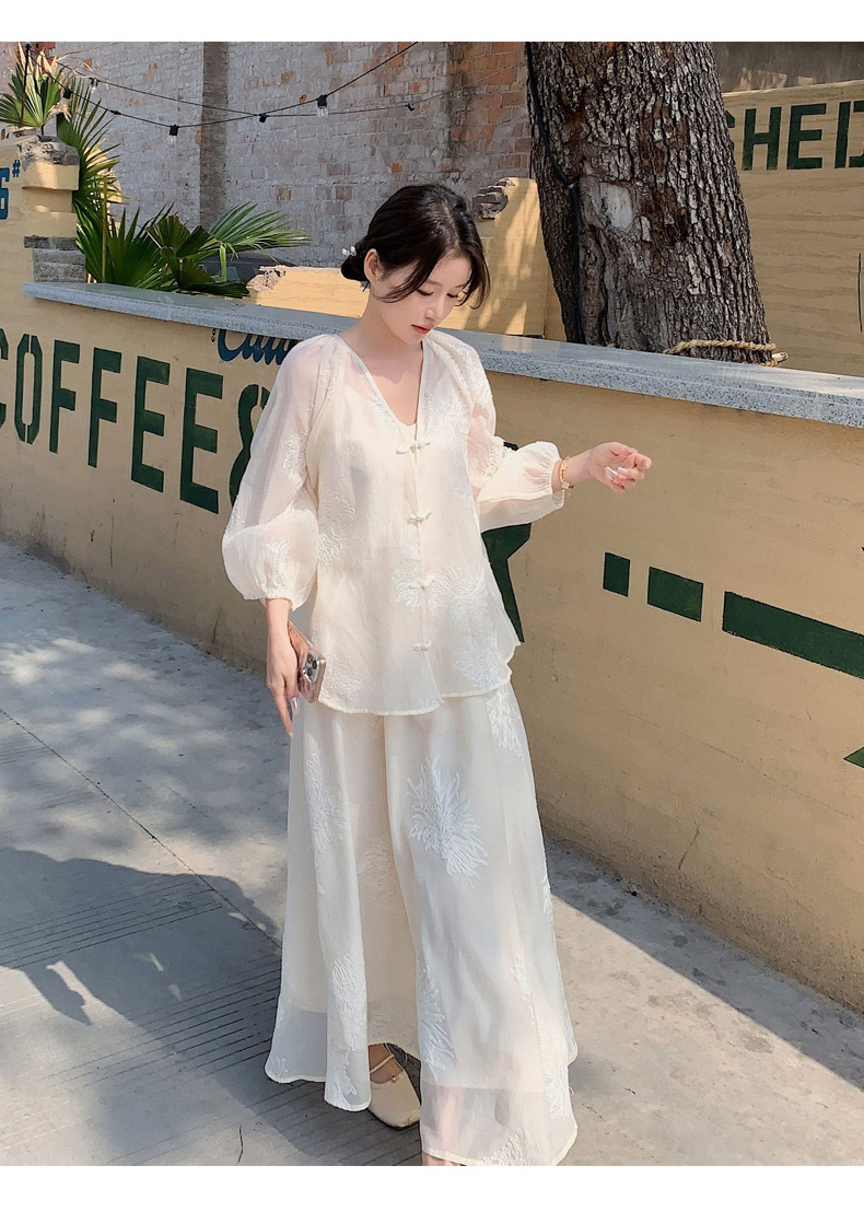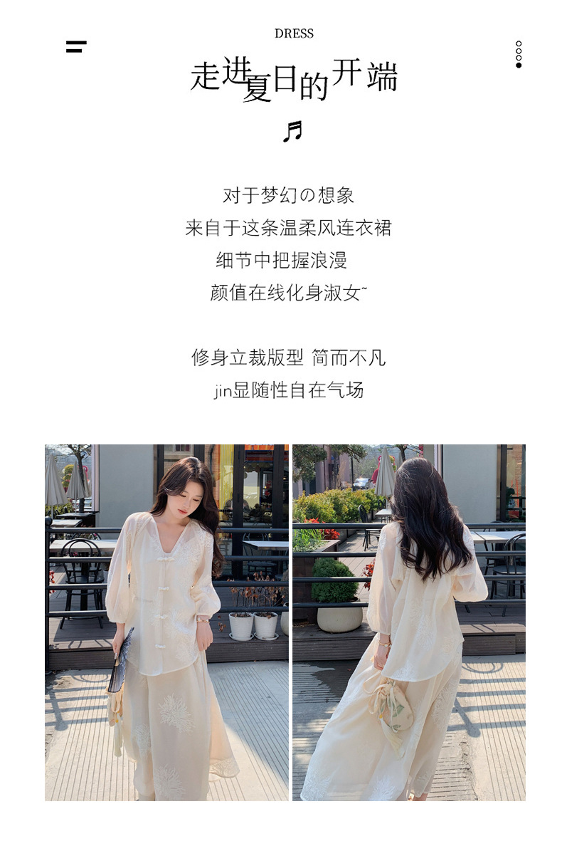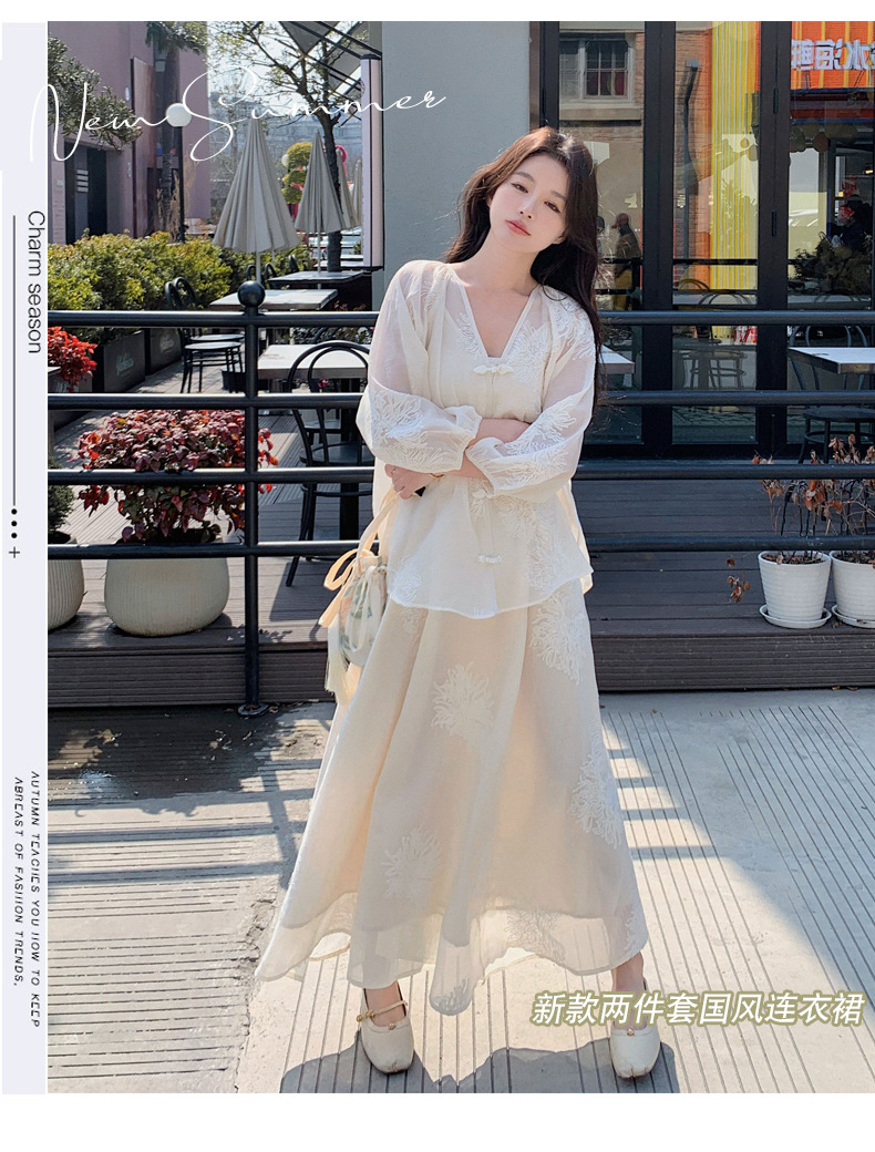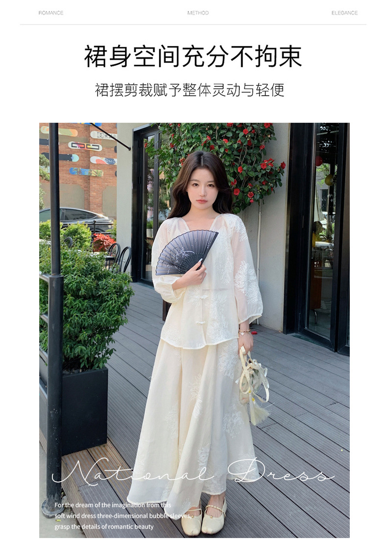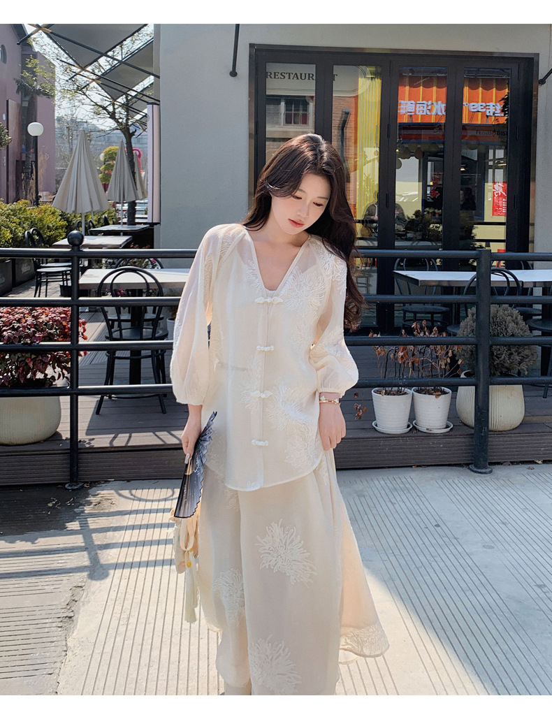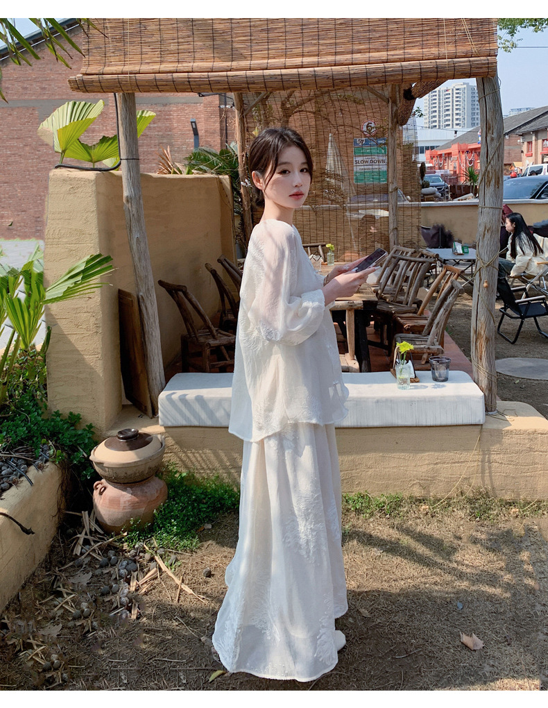 [멩메이] 25 봄 스타일 새로운 중국 선 스크린 셔츠 자수 화이트 셔츠 국가 스타일 세트 스커트 투피스 세트스토어 가기