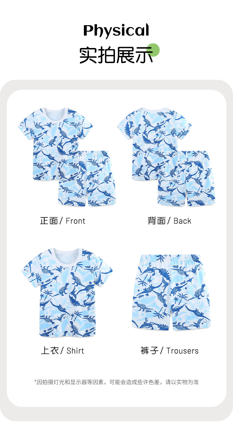 AostaBetty 유럽과 미국 스타일 소년의 반팔 홈 세트 투피스 여름 새 라운드 넥 캐주얼 어린이 세트