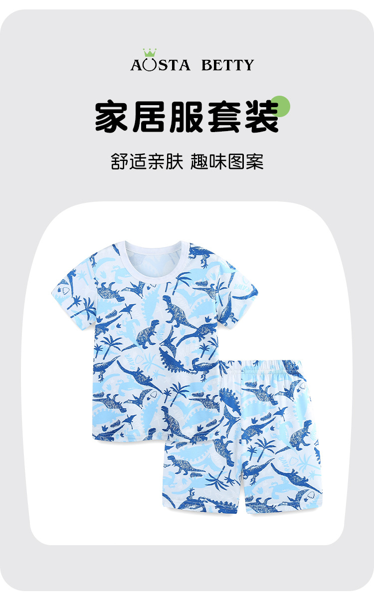 AostaBetty 유럽과 미국 스타일 소년의 반팔 홈 세트 투피스 여름 새 라운드 넥 캐주얼 어린이 세트스토어 가기