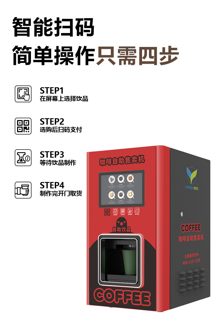 완전 자동 커피 자동 판매기, 상업용 무인 판매, 자체 스캔 코드 뜨거운 음료 자동 판매기 제조업체 OEM