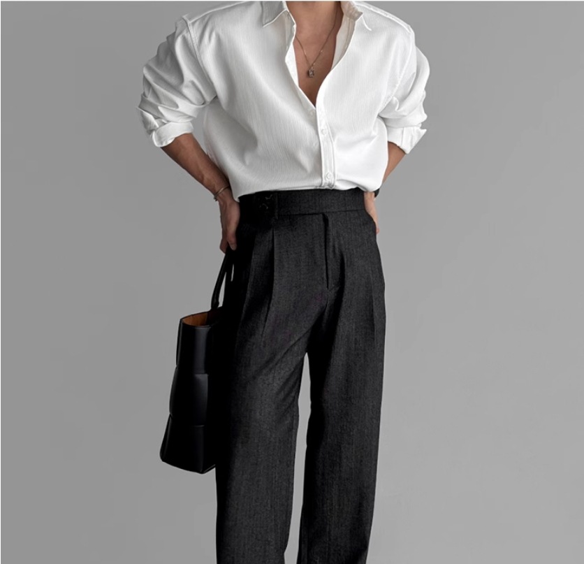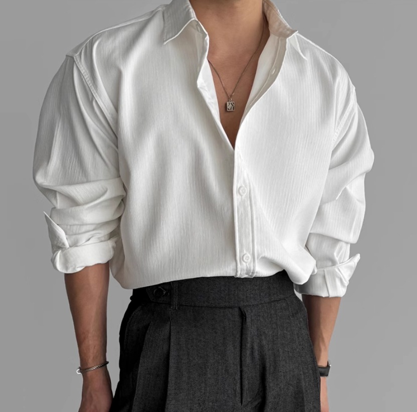 하이 퀄리티 "텍스처 센스" 단색 셔츠 남자 긴 소매 봄과 가을 느슨한 셔츠 한국 스타일 틈새 캐주얼 셔츠