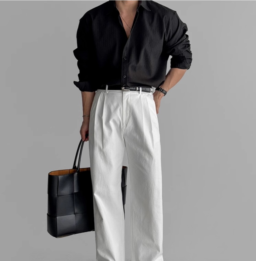 하이 퀄리티 "텍스처 센스" 단색 셔츠 남자 긴 소매 봄과 가을 느슨한 셔츠 한국 스타일 틈새 캐주얼 셔츠스토어 가기