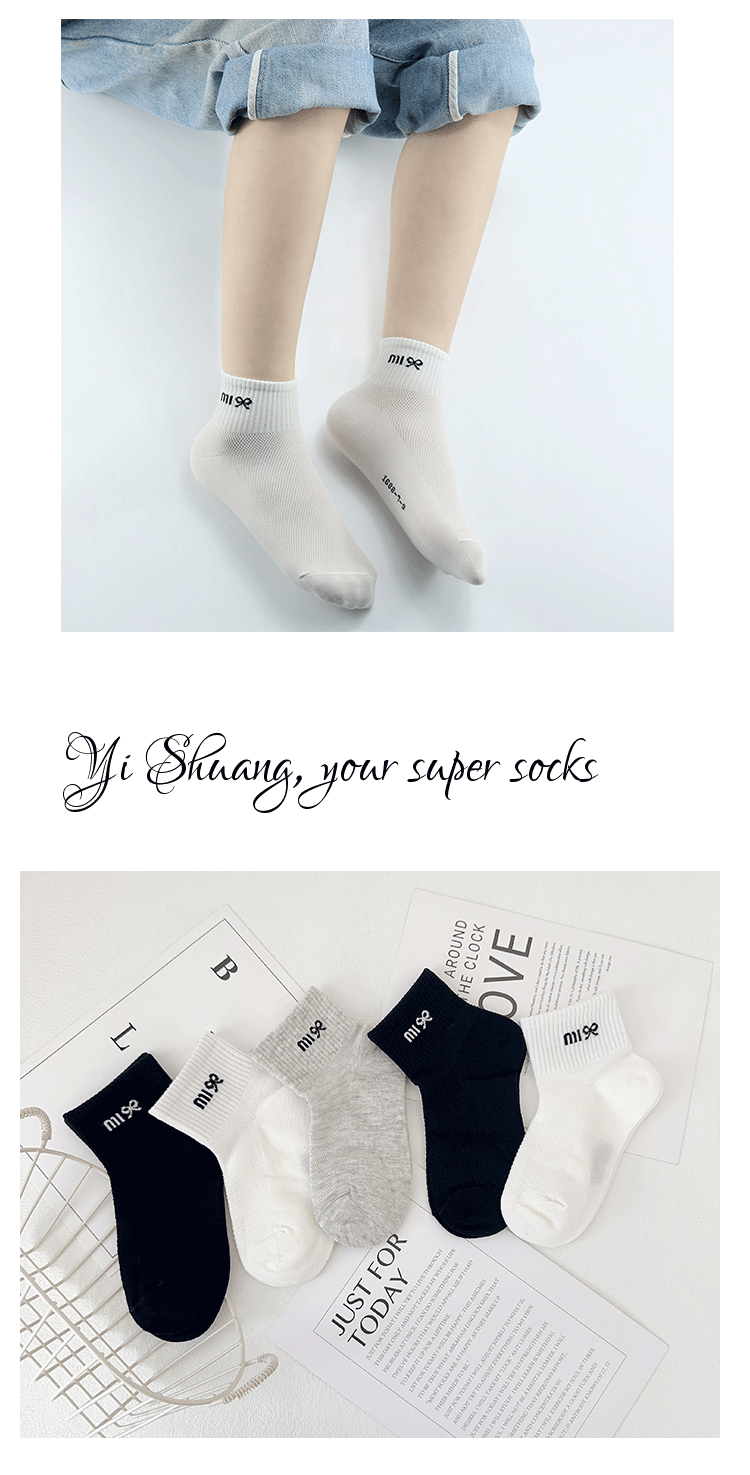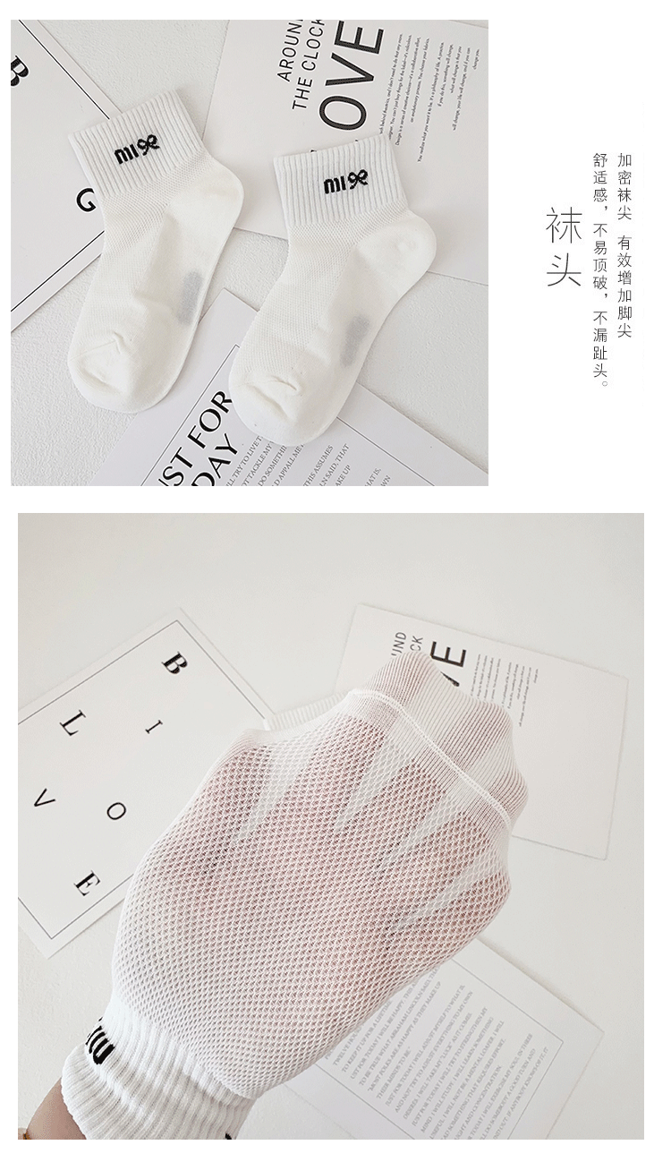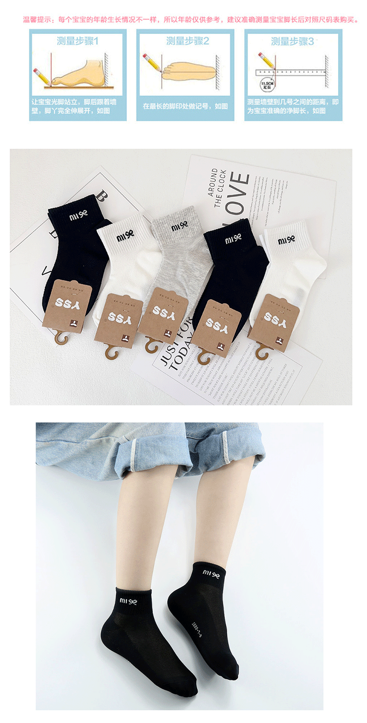 이쌍 어린이 양말 여름 새 메쉬 통기성 한국어 편지 짧은 양말 빗살 검은 색과 흰색 양말스토어 가기