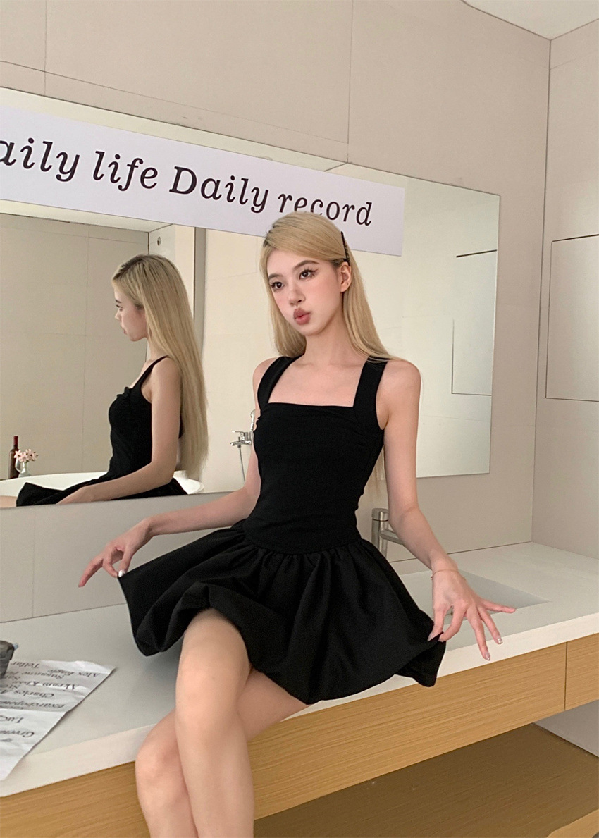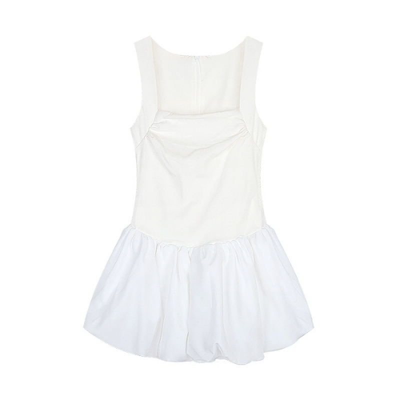 발레 스타일 화이트 슬링 원피스 여성 여름 새로운 도착 작은 허리 A 라인 스커트 슬리밍 퍼피 짧은 치마스토어 가기