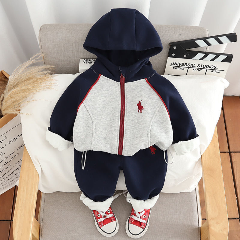 2025 겨울 새 소년 기모 후드 지퍼 셔츠 긴 소매 세트 소년 스포츠 유행 투피스 바지