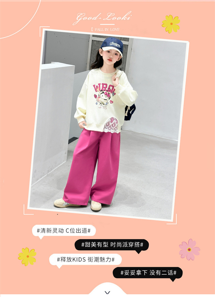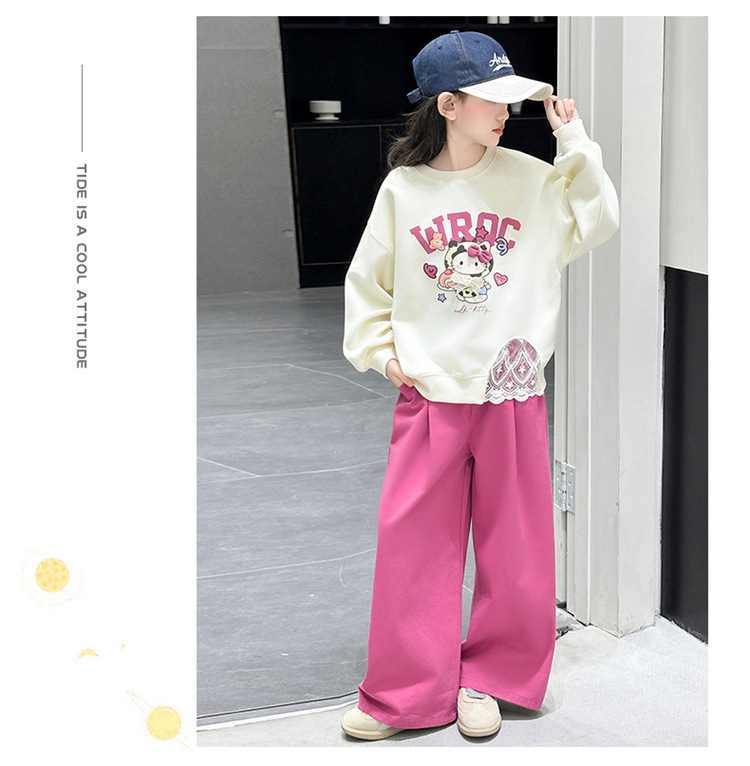 소녀 스웨터 세트 2025 봄과 가을 새로운 외국 스타일의 어린이 느슨한 넓은 다리 바지 큰 어린이와 소녀 투피스 패션스토어 가기