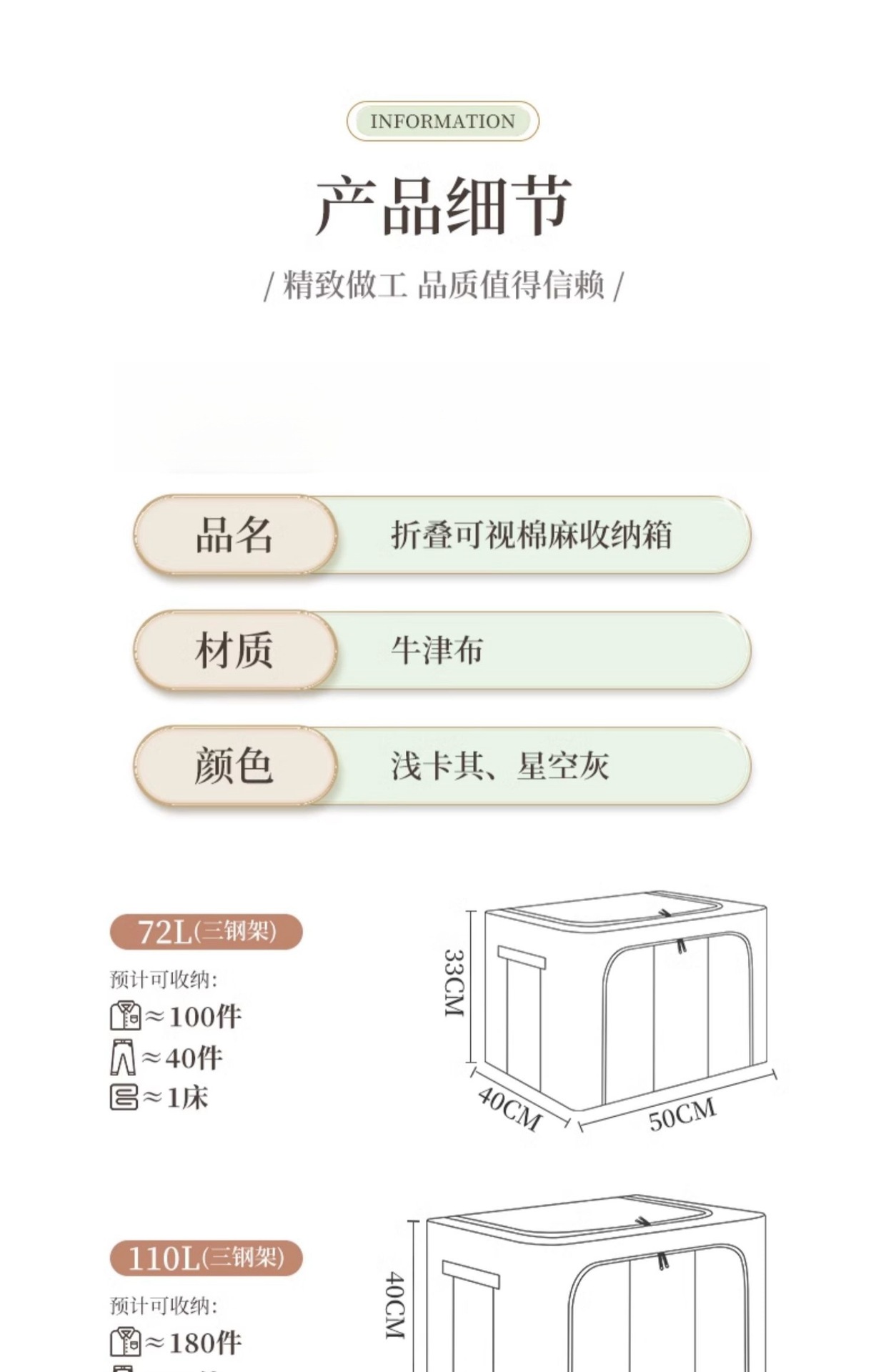 • 110L (길이 60*가로 42*높이 40cm) 두꺼운 원단/두꺼운 철제 프레임/방수 및 방습