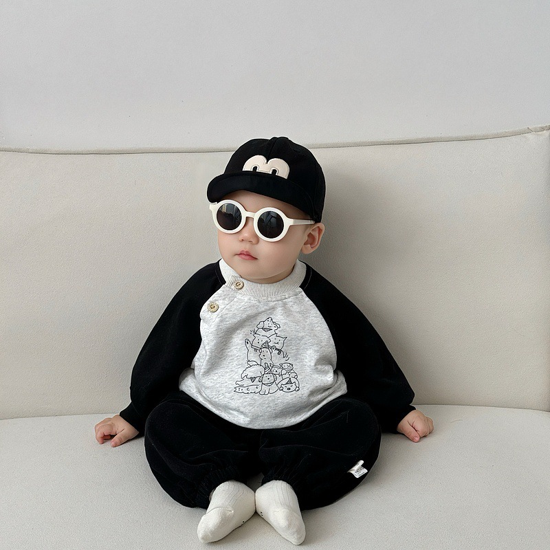 소년 봄 스포츠 세트 잘 생긴 어린이 라글란 소매 만화 인쇄 운동복 바지 가을 아기 2 피스 세트스토어 가기