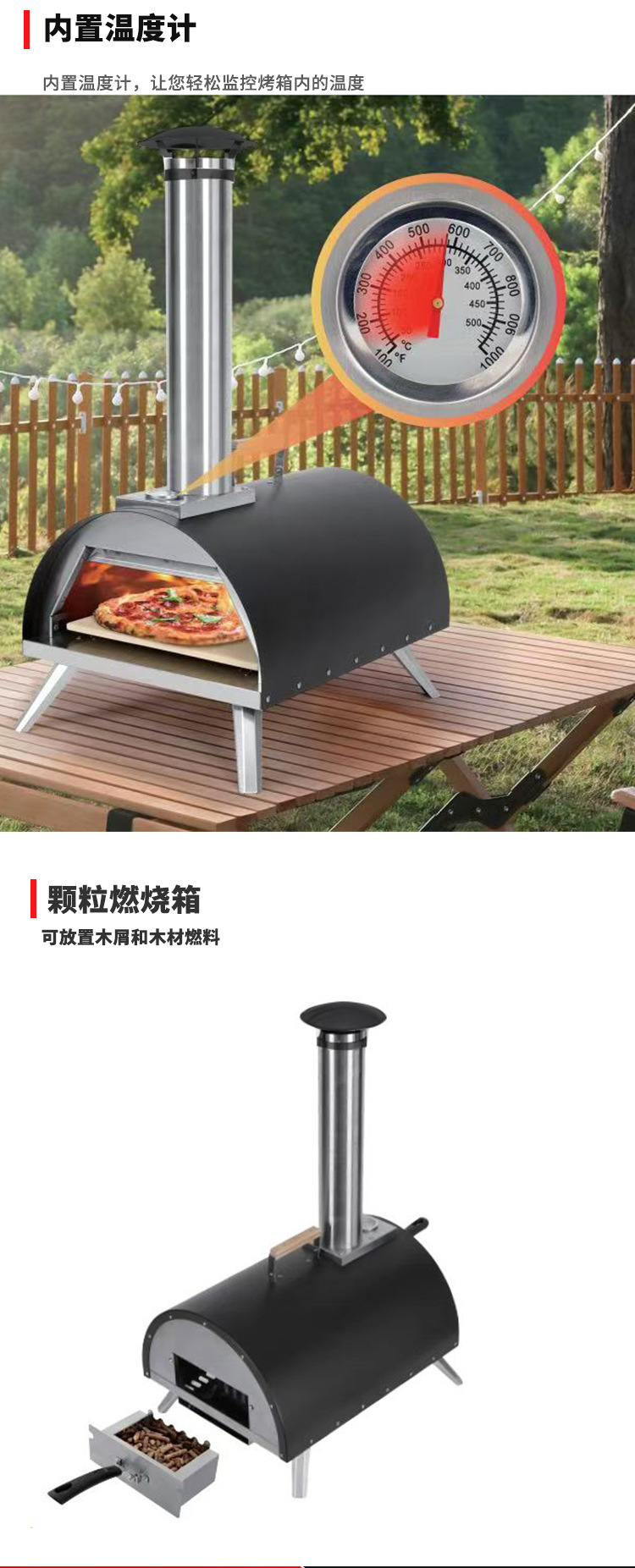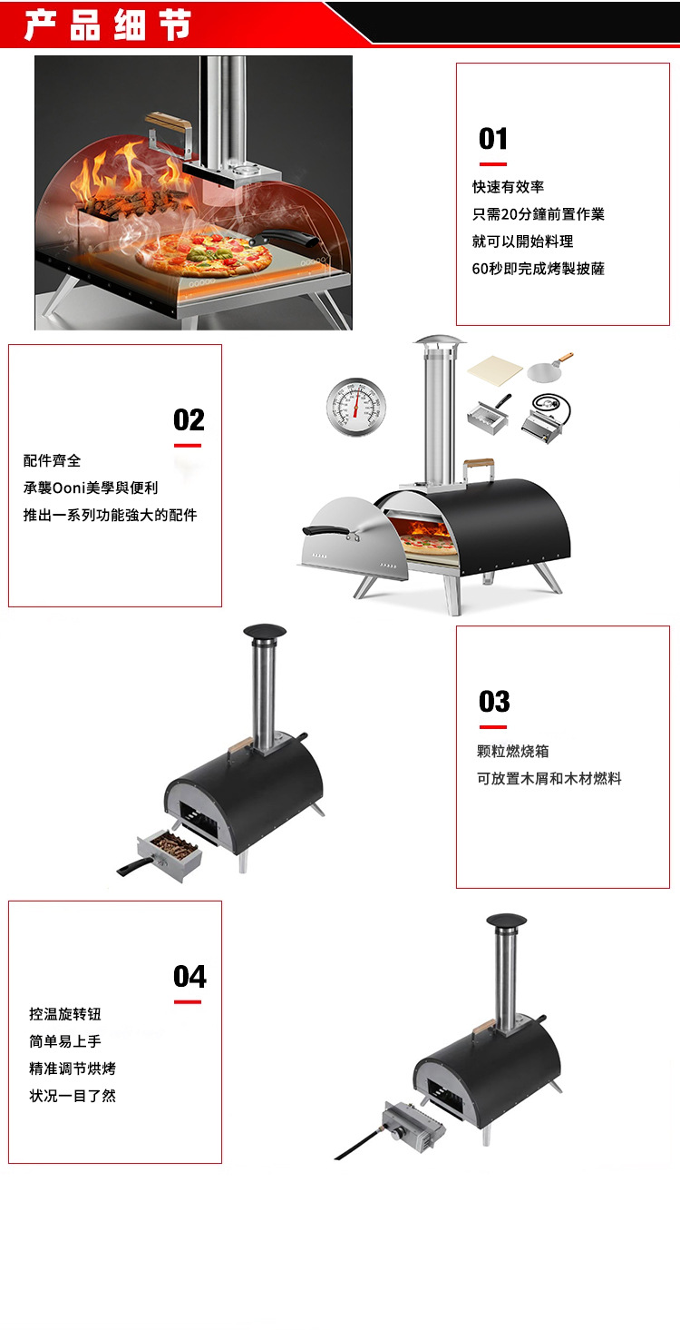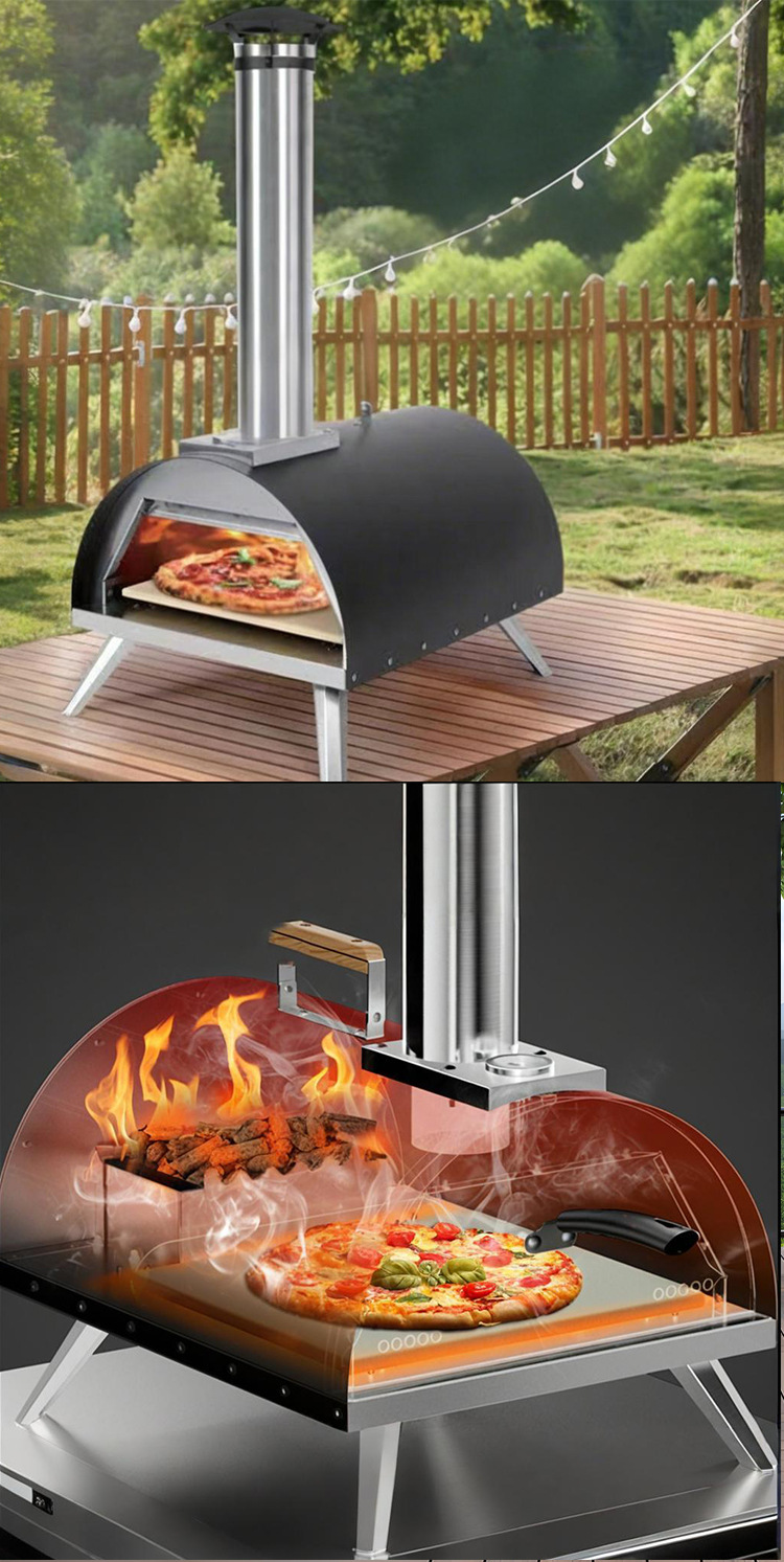공장 직접 공급 야외 피자 오븐 톱밥 과립 BBQ 오븐 가정용 수동 로타리 베이킹로 스테인레스 스틸