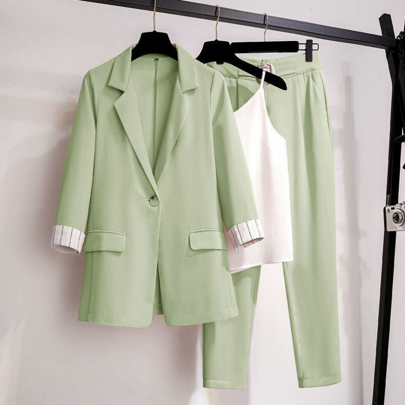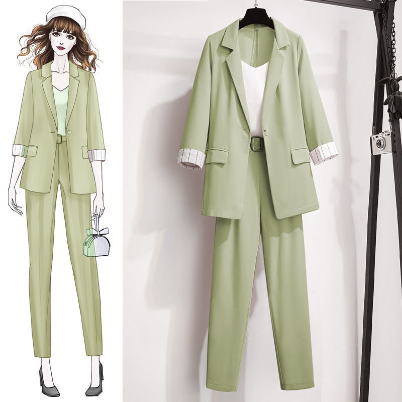 플러스 사이즈 통통한 봄과 가을 새로운 전문 고기 우아한 느슨한 슬리밍 세트 얇은 재킷 여름 싱글 세트 여성스토어 가기