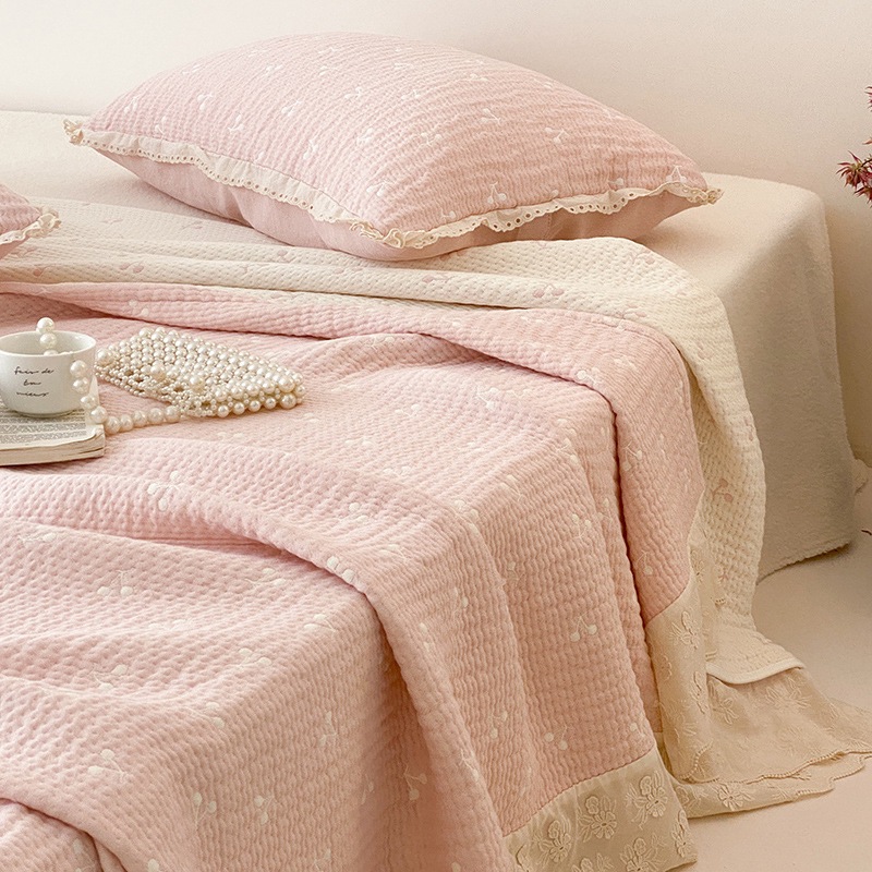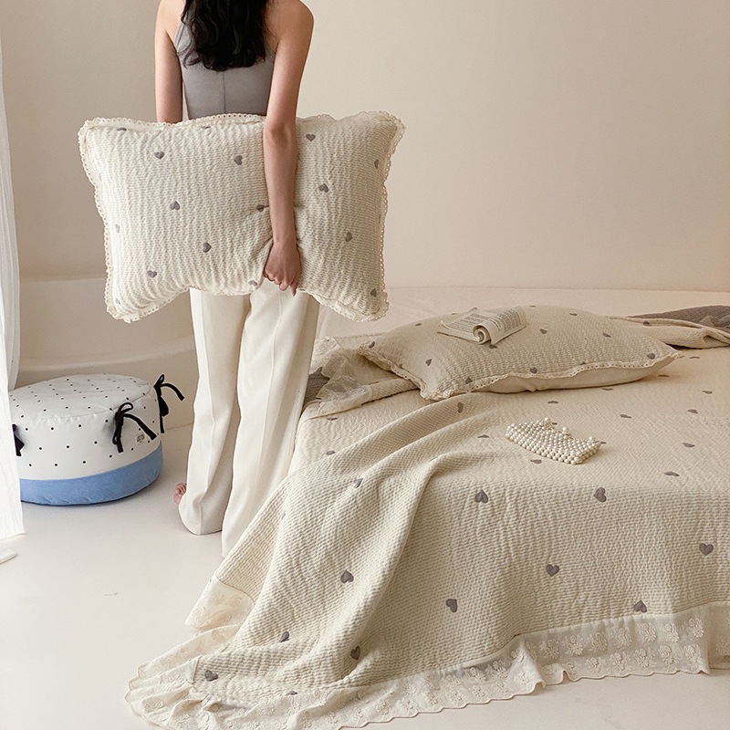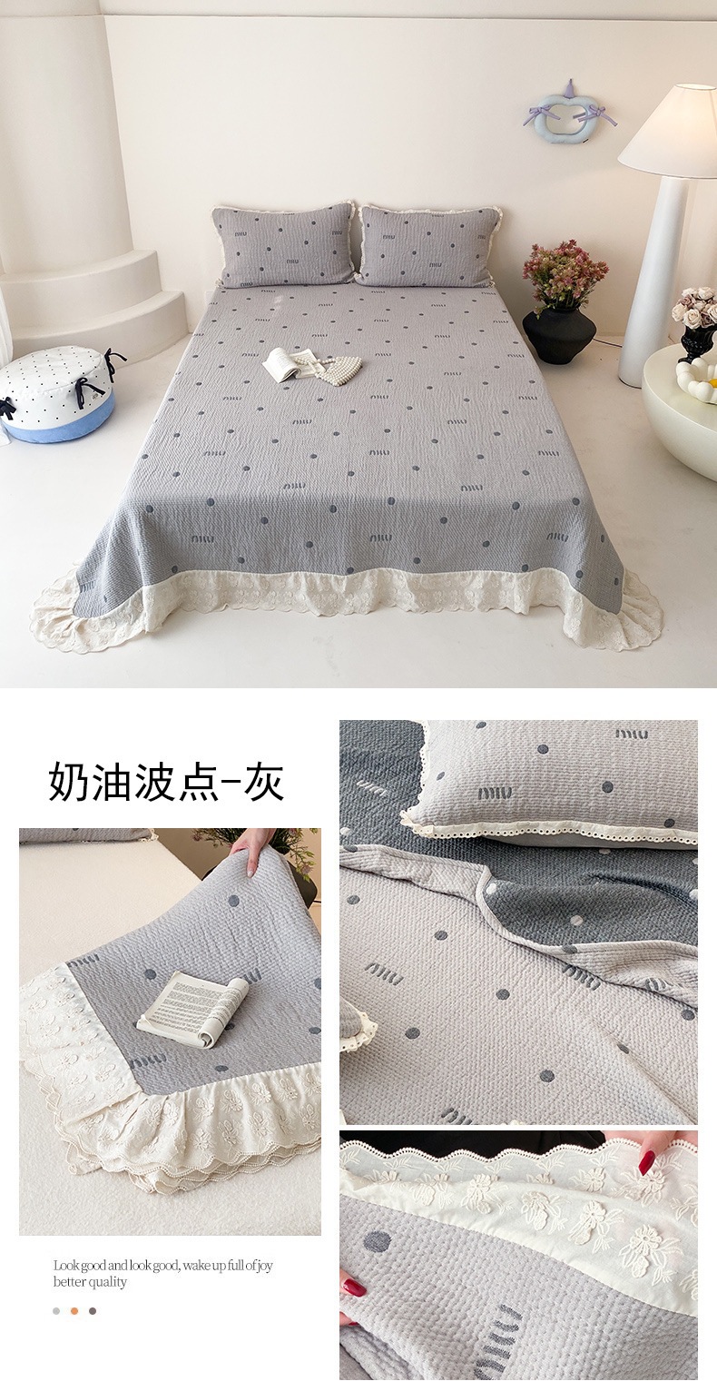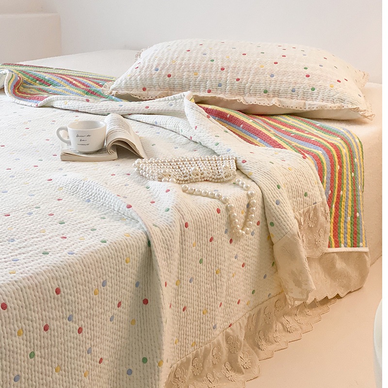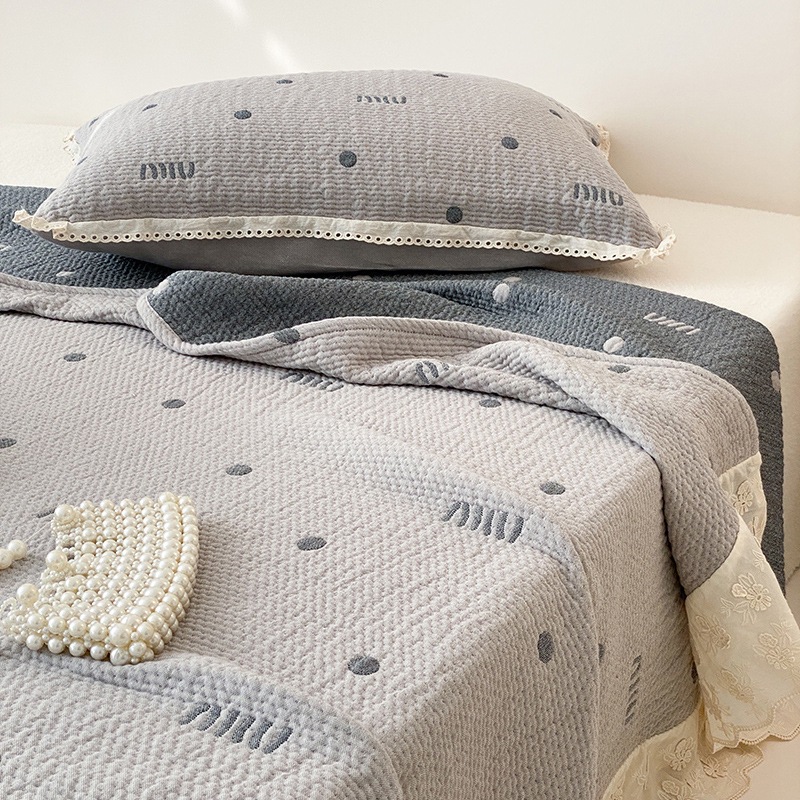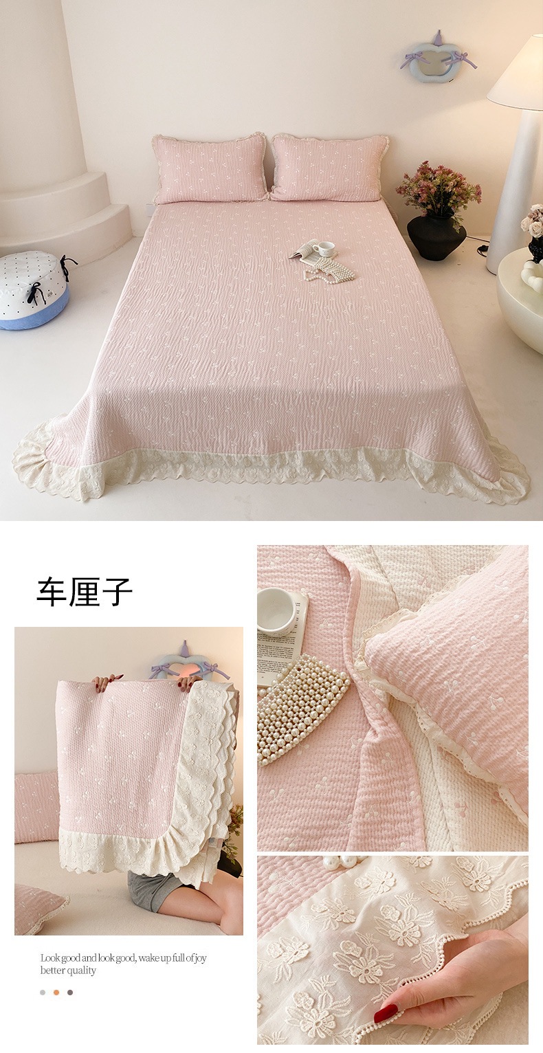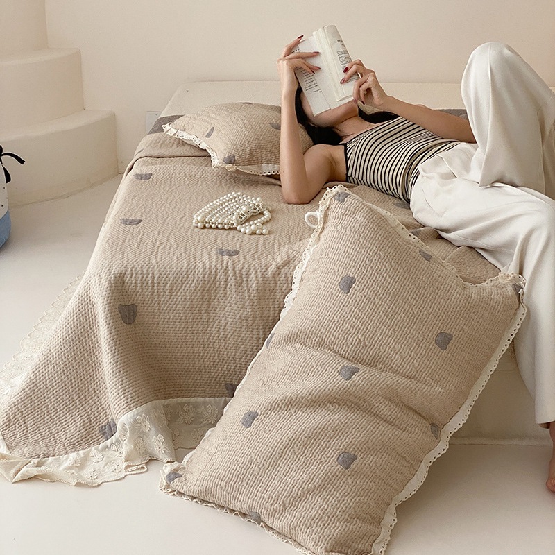 한국 스타일 신선한 면 거즈 원사 염색 자카드 침대 커버 3 피스 세트 코튼 레이스 퀼트 커버 커버 담요