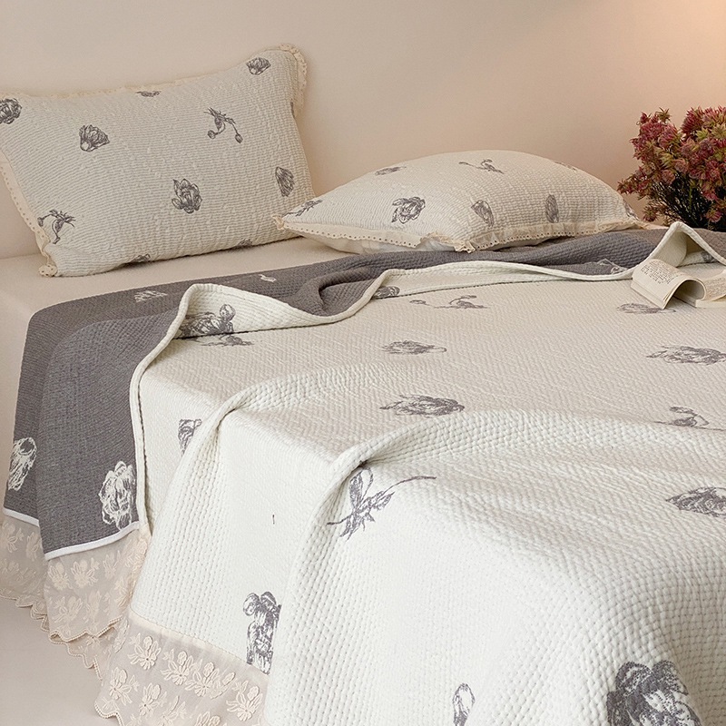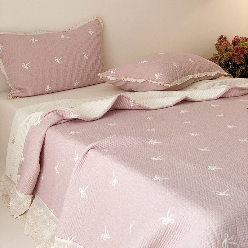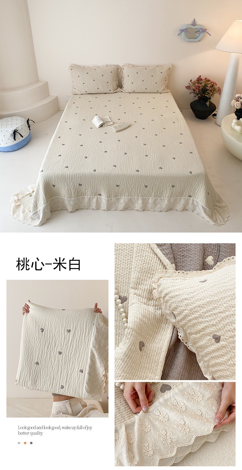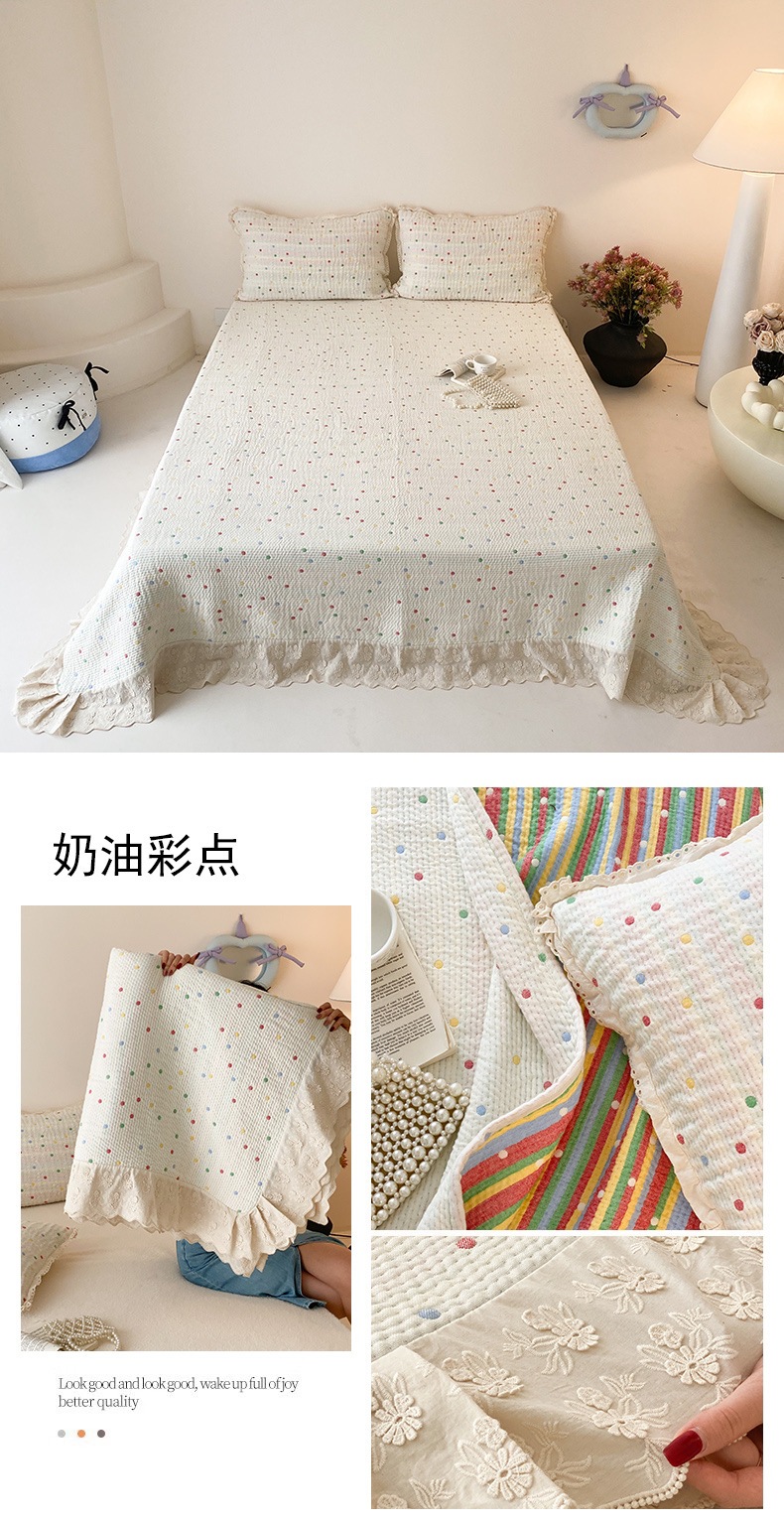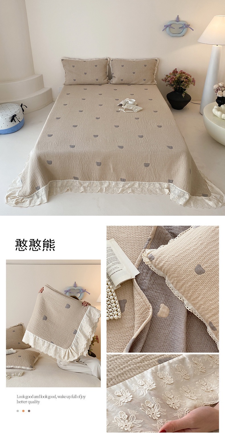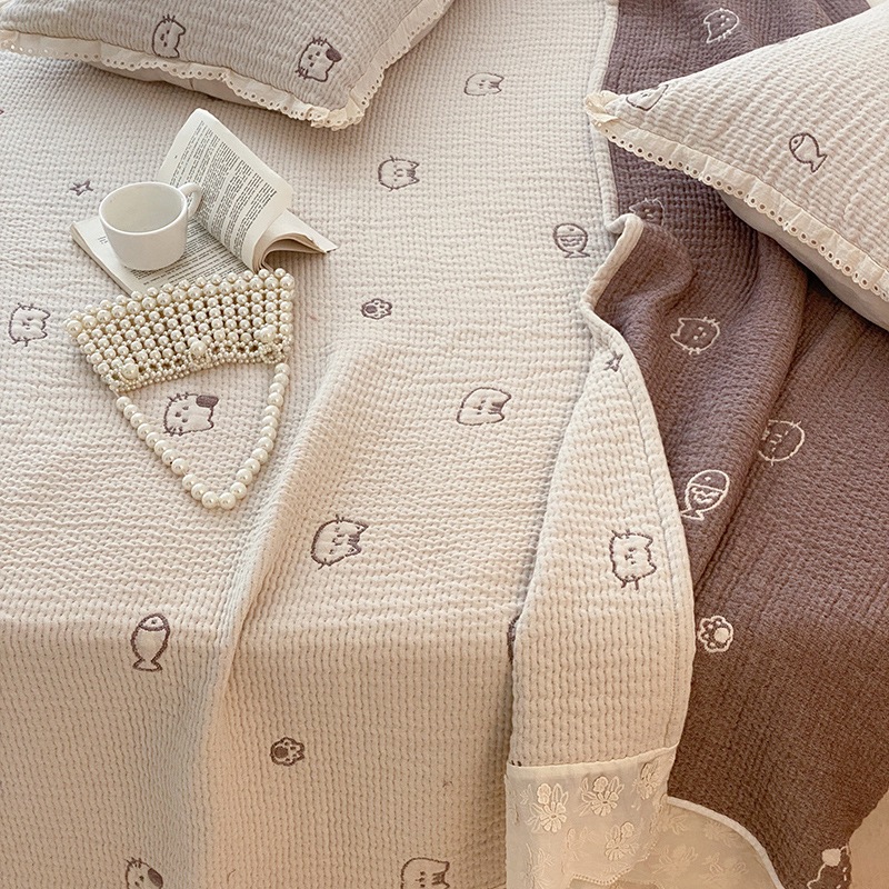 한국 스타일 신선한 면 거즈 원사 염색 자카드 침대 커버 3 피스 세트 코튼 레이스 퀼트 커버 커버 담요