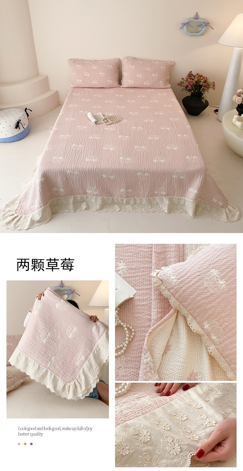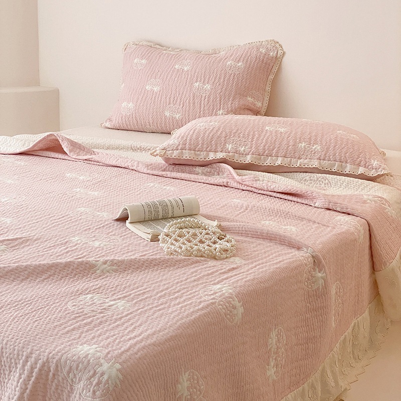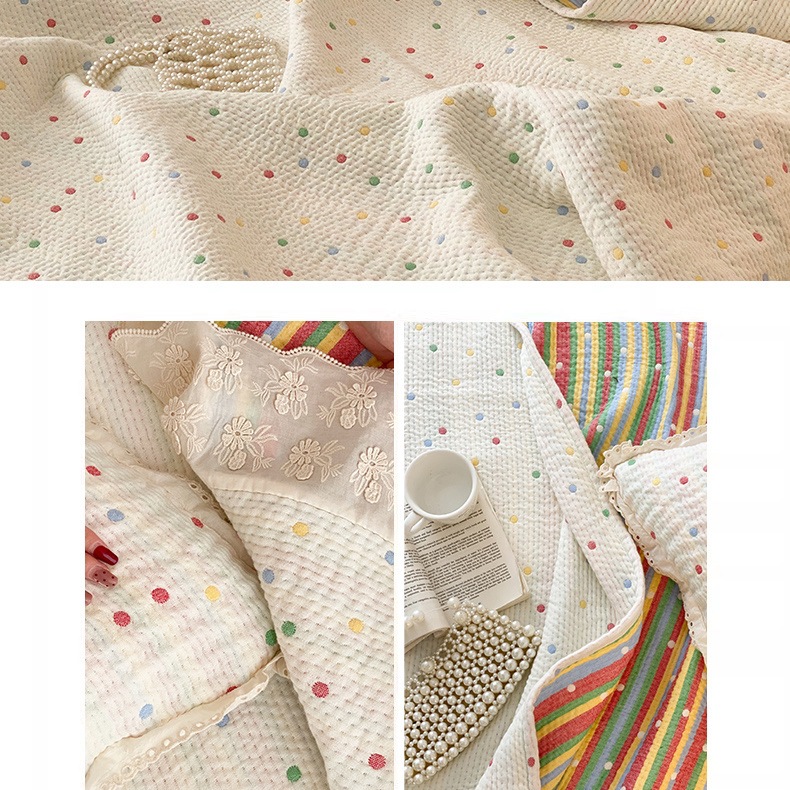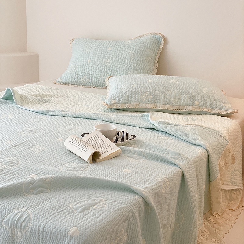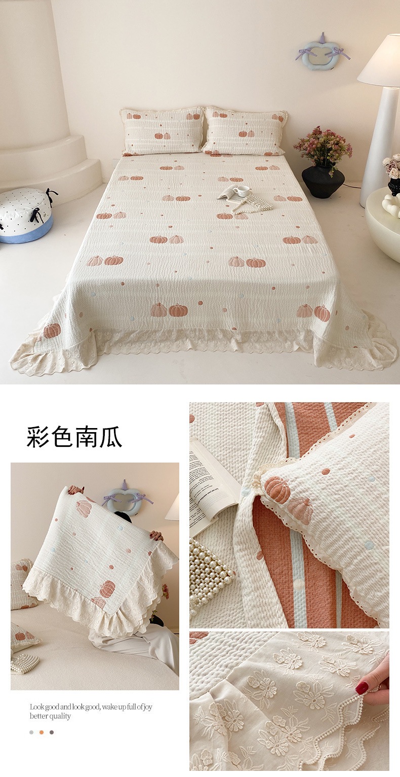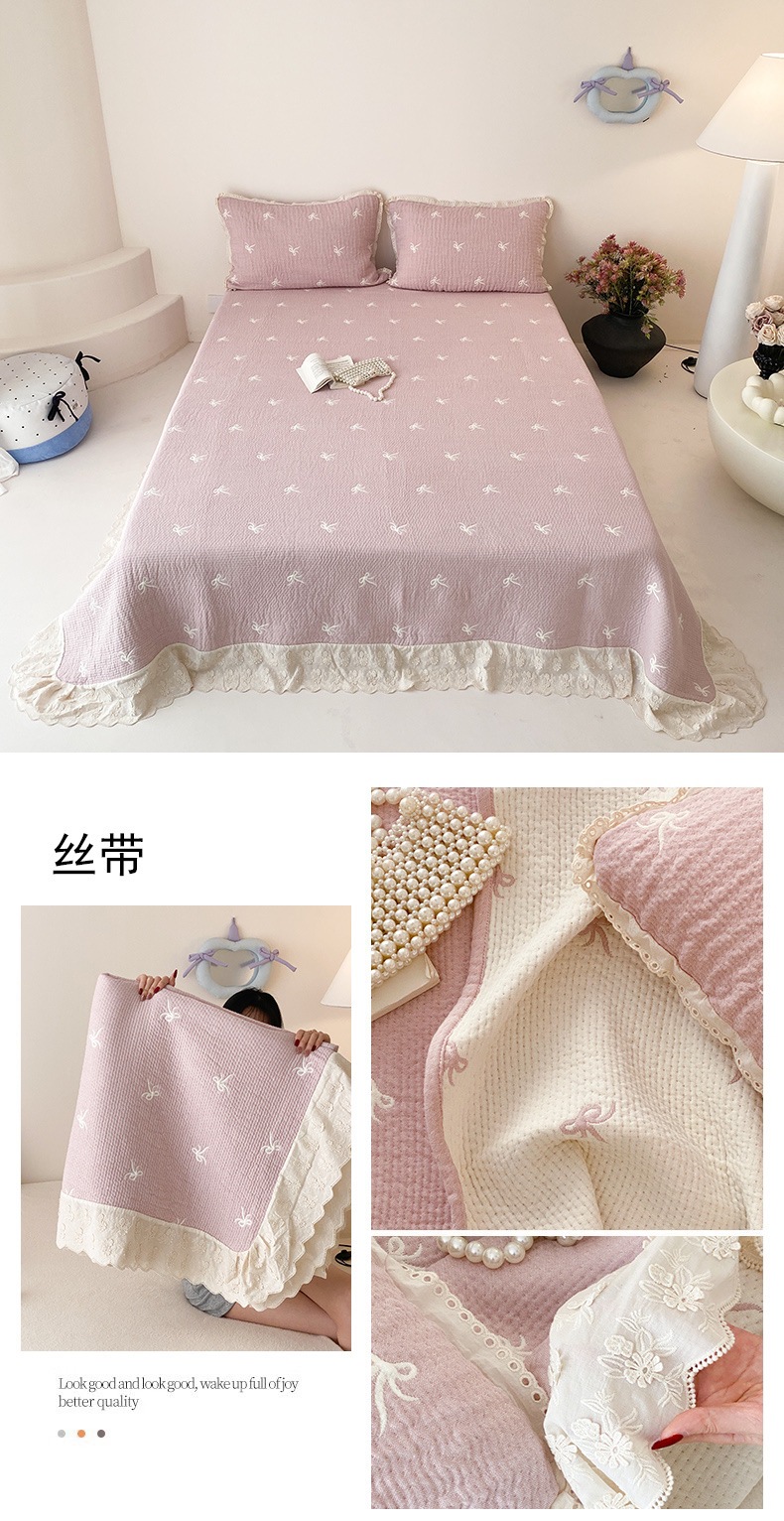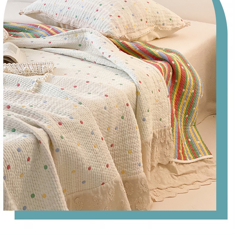 한국 스타일 신선한 면 거즈 원사 염색 자카드 침대 커버 3 피스 세트 코튼 레이스 퀼트 커버 커버 담요
