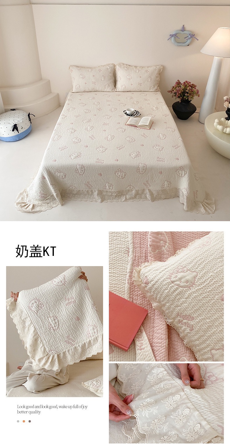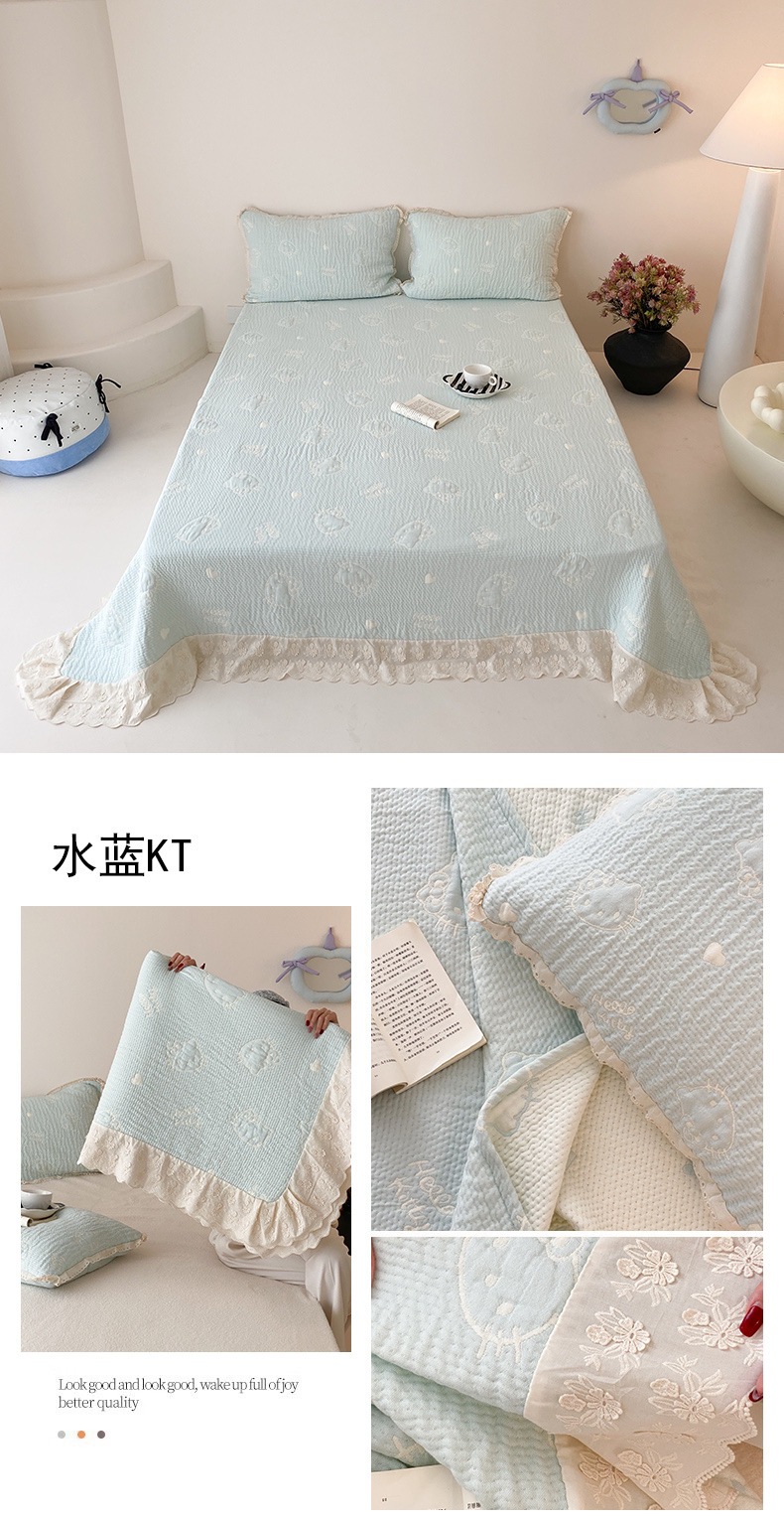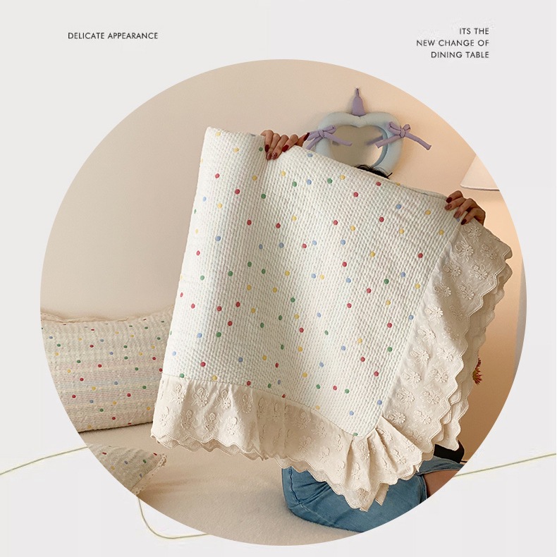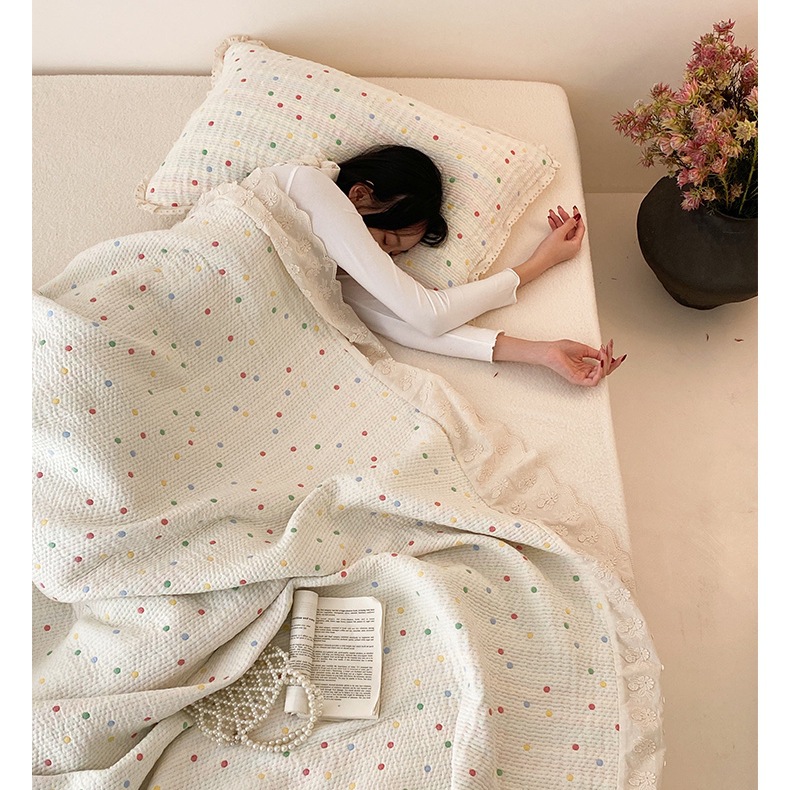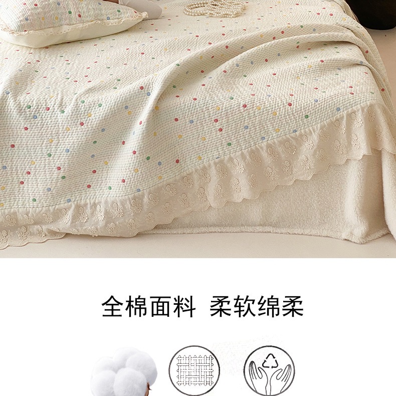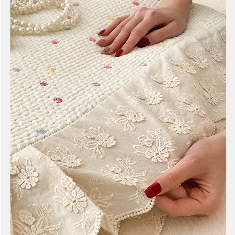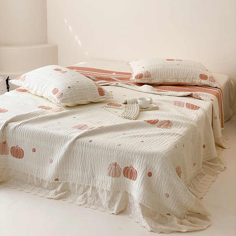 한국 스타일 신선한 면 거즈 원사 염색 자카드 침대 커버 3 피스 세트 코튼 레이스 퀼트 커버 커버 담요