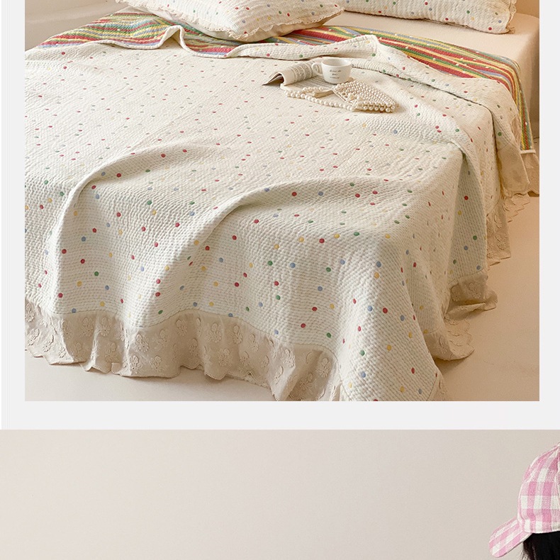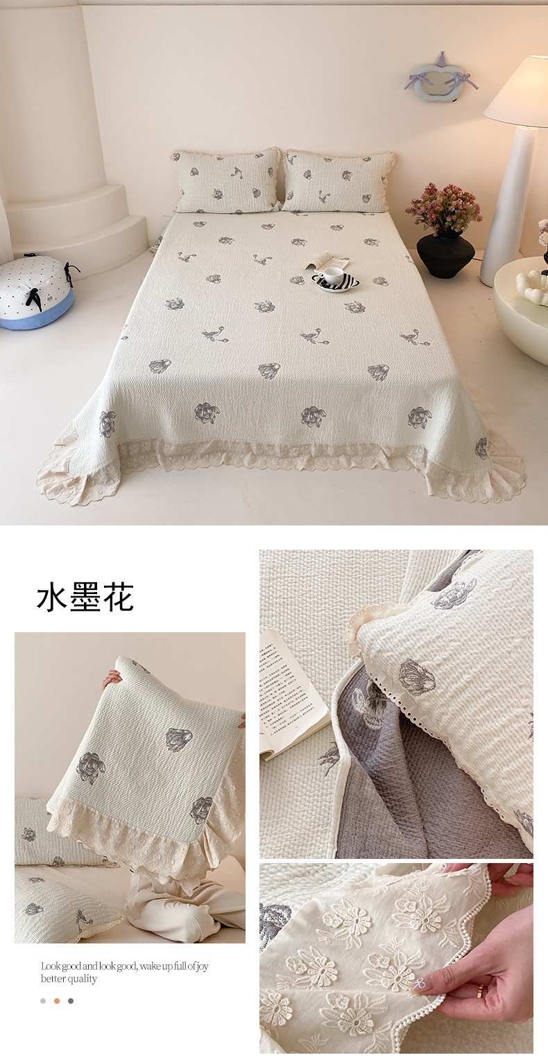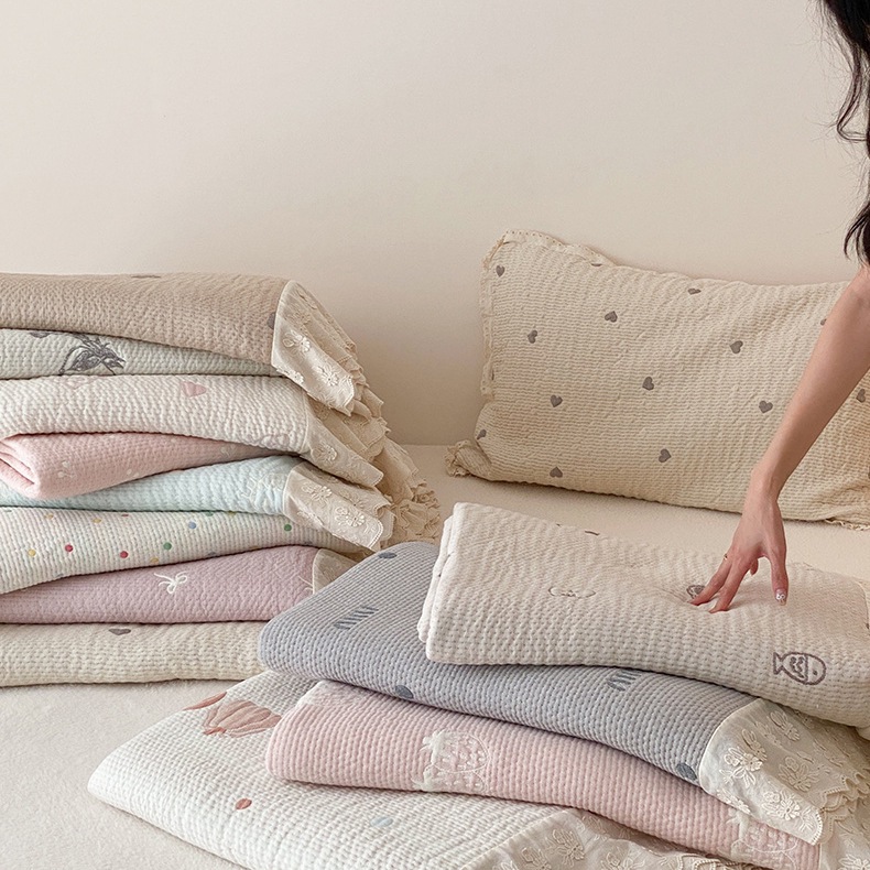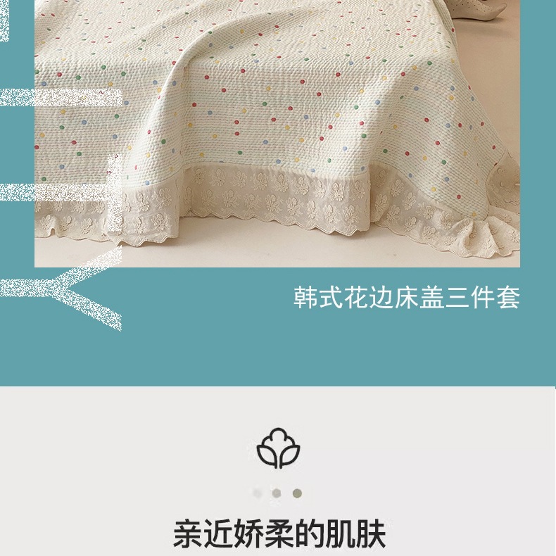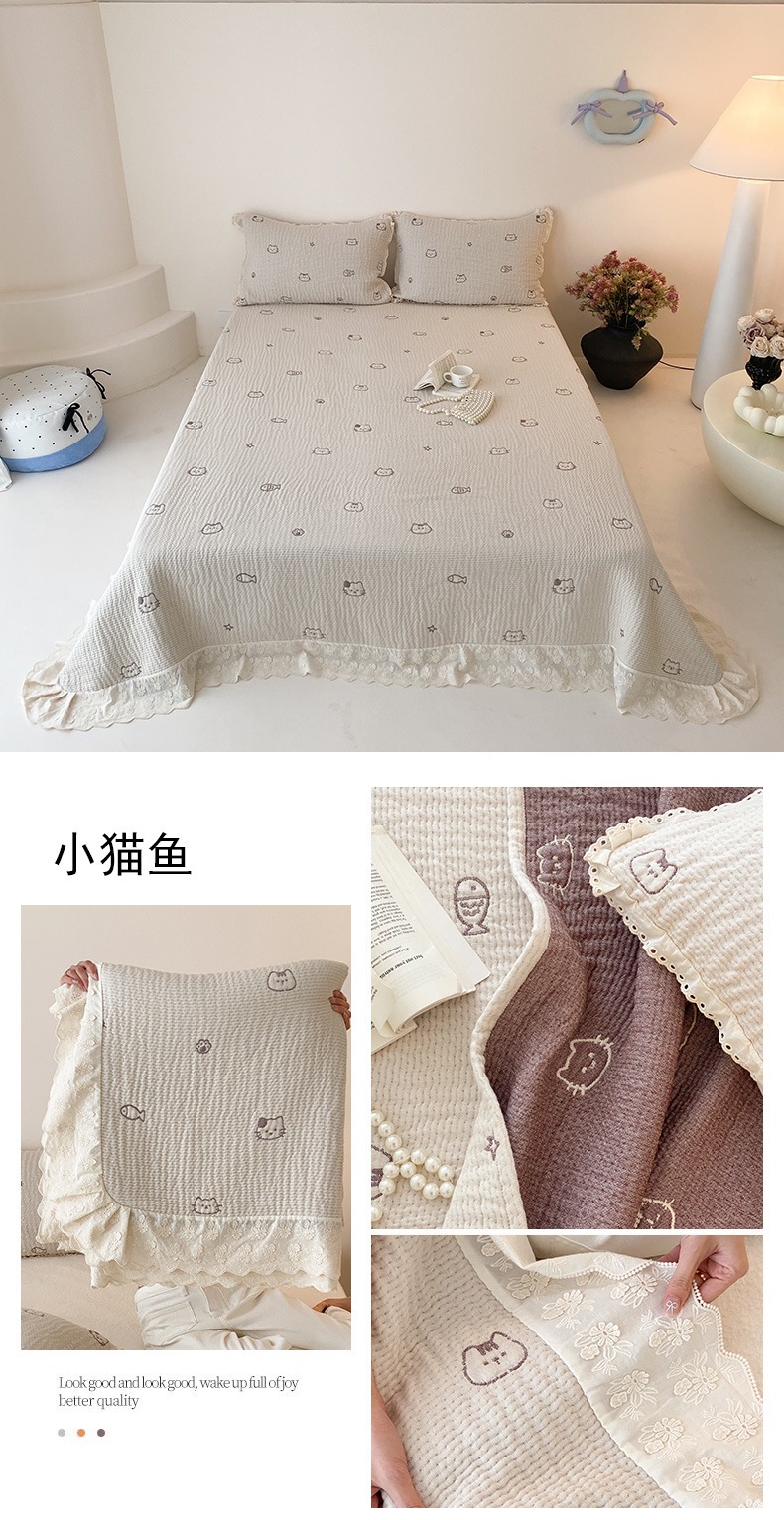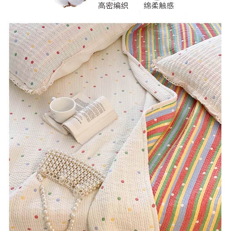 한국 스타일 신선한 면 거즈 원사 염색 자카드 침대 커버 3 피스 세트 코튼 레이스 퀼트 커버 커버 담요스토어 가기