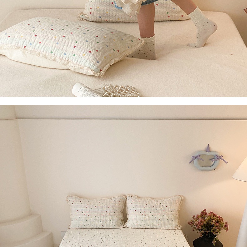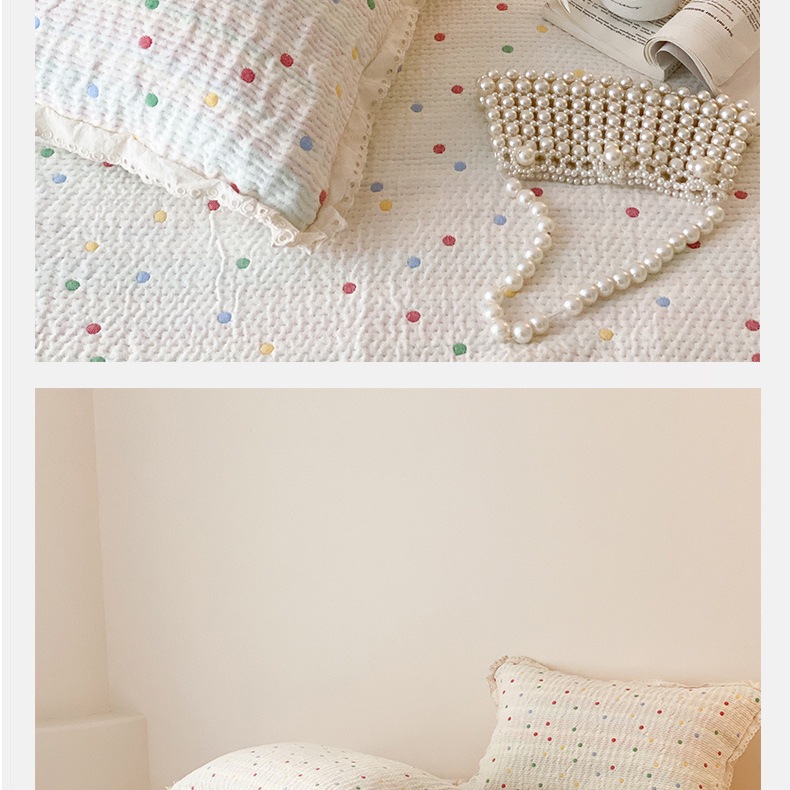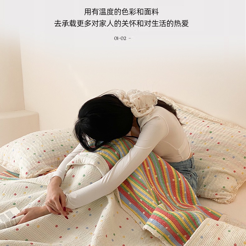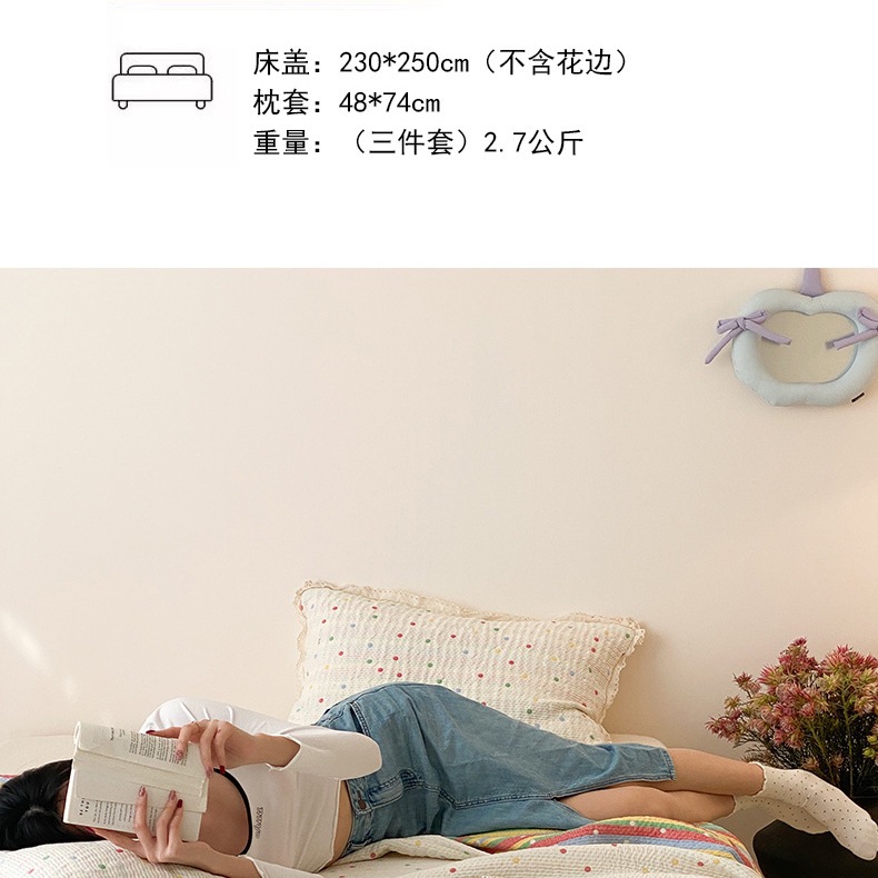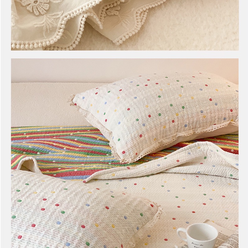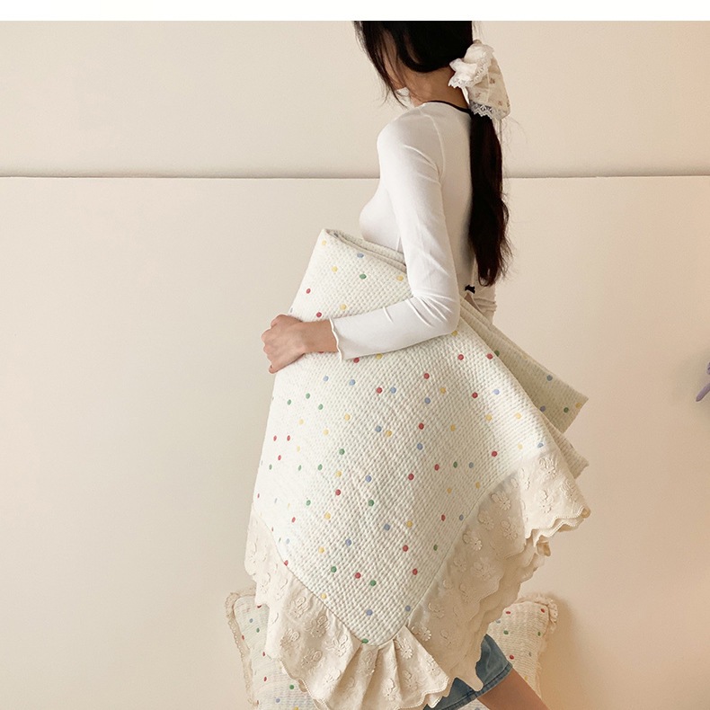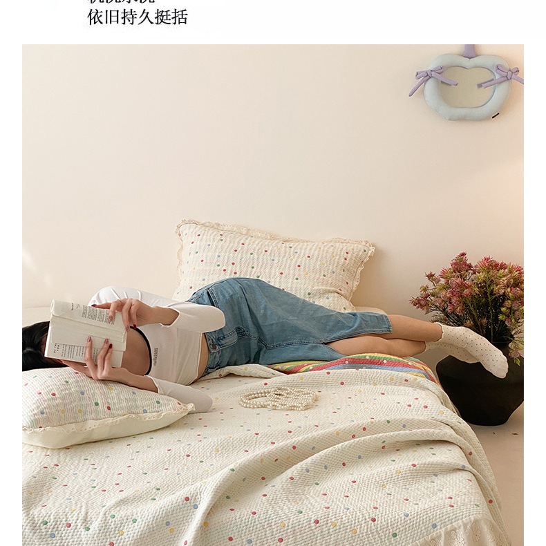 한국 스타일 신선한 면 거즈 원사 염색 자카드 침대 커버 3 피스 세트 코튼 레이스 퀼트 커버 커버 담요스토어 가기