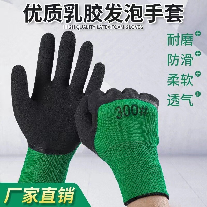 검정색과 녹색의 발포 장갑, 고무로 코팅된 주름진 두꺼운 미끄럼 방지 손 보호 장갑, 내마모성, 통기성, 반장갑, 노동 보호 도매 보호 장비스토어 가기