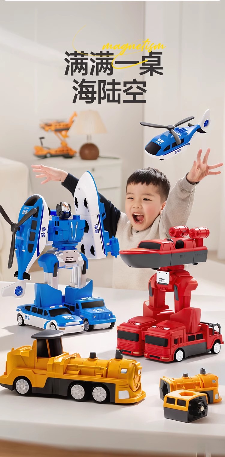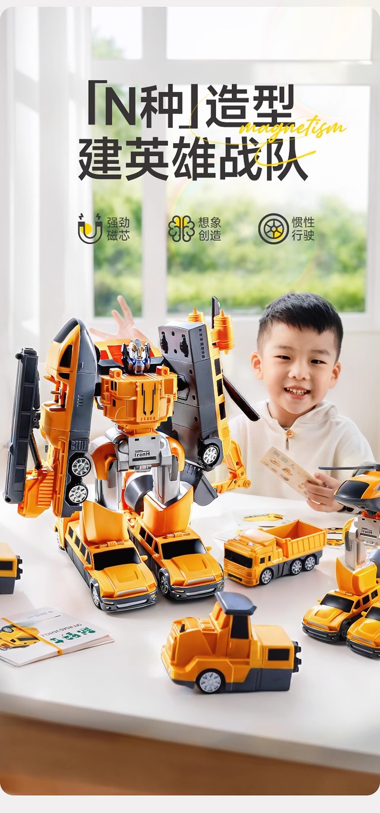 변형 공학 경찰 군 자동차 적합 로봇 어린이 자기 건물 블록 교육 장난감 소년 선물스토어 가기