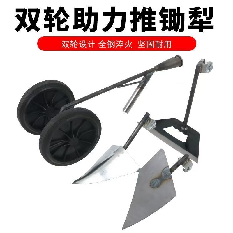 손으로 당기는 삼각형 쟁기로 홈을 파고 데우는 도구, 삼각형 괭이, 바퀴가 달린 인력 보조 편심 괭이, 손으로 밀어 올리는 토양 굴착기