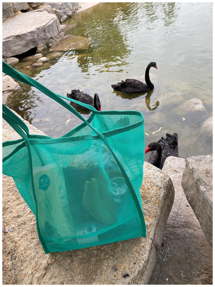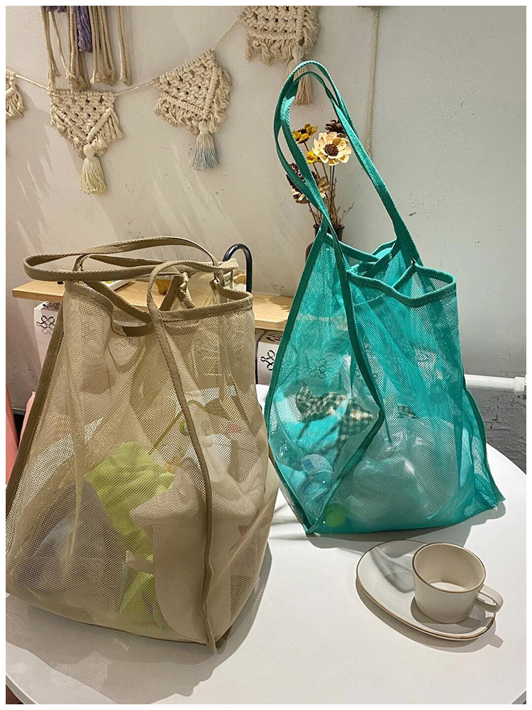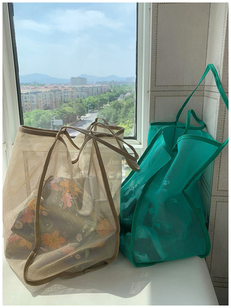 2024 새로운 Ins 스타일 투명 메쉬 숄더 백 유행 경량 대용량 올 매치 쇼핑백 비치 백스토어 가기