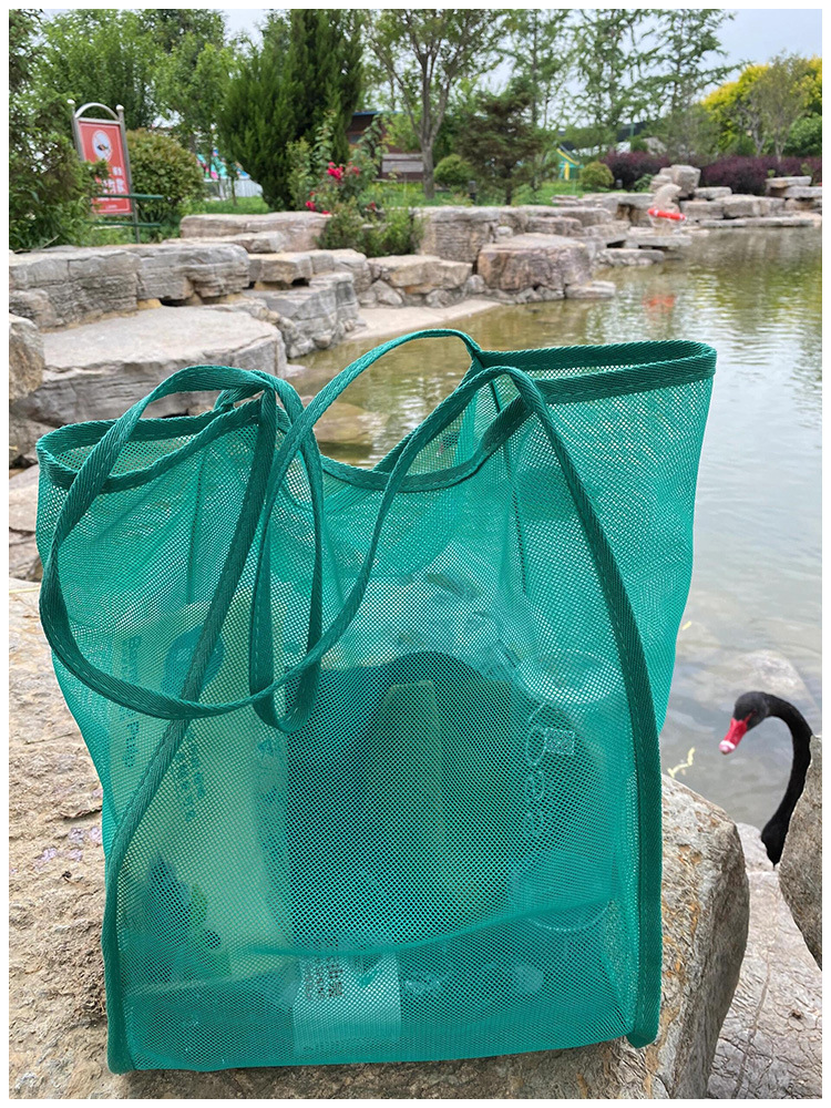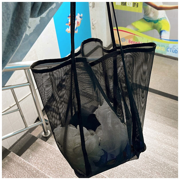2024 새로운 Ins 스타일 투명 메쉬 숄더 백 유행 경량 대용량 올 매치 쇼핑백 비치 백