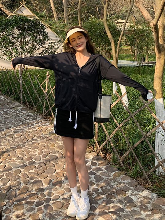 Douyin 품질 여성의 멋진 태양 보호 의류 시원한 겉옷 느슨한 통기성 안티 UV 후드 자켓 여성 여름스토어 가기