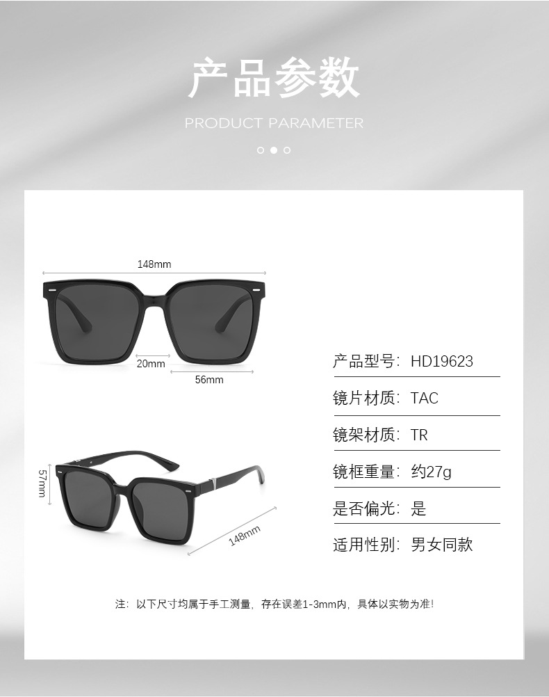 새로운 스타일 스퀘어 인 한국식 쌀 네일 선글라스 19623 사이버 연예인 대형 프레임 독특한 안티-UV 편광 선글라스