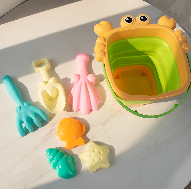 어린이 접이식 버킷 비치 장난감 아기 해변 모래 발굴 모래 도구 삽 세트 물 바다 장비와 함께 플레이스토어 가기