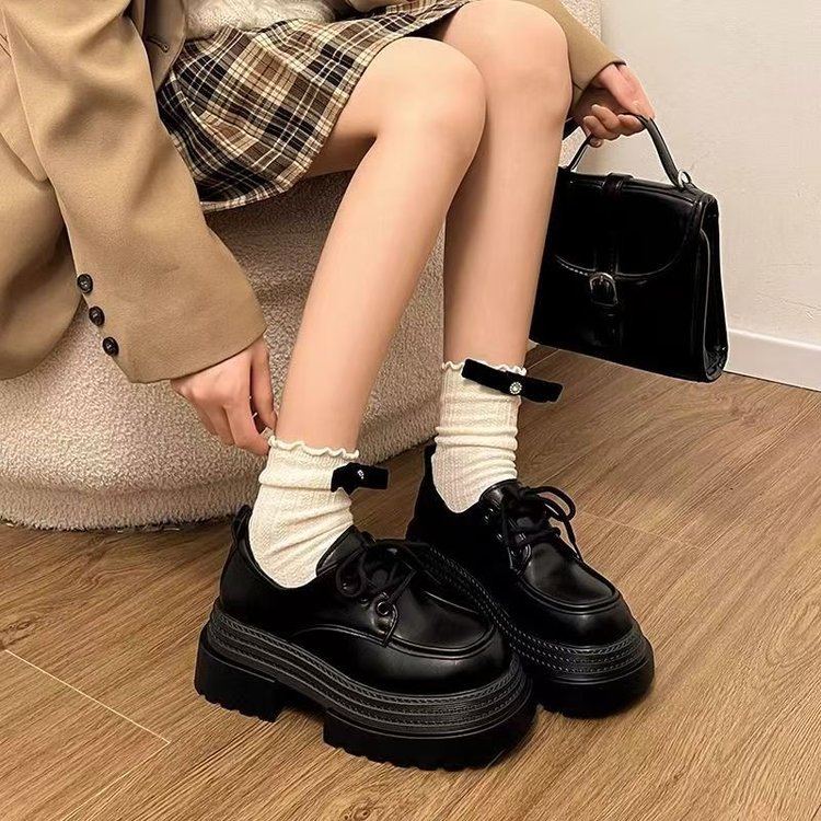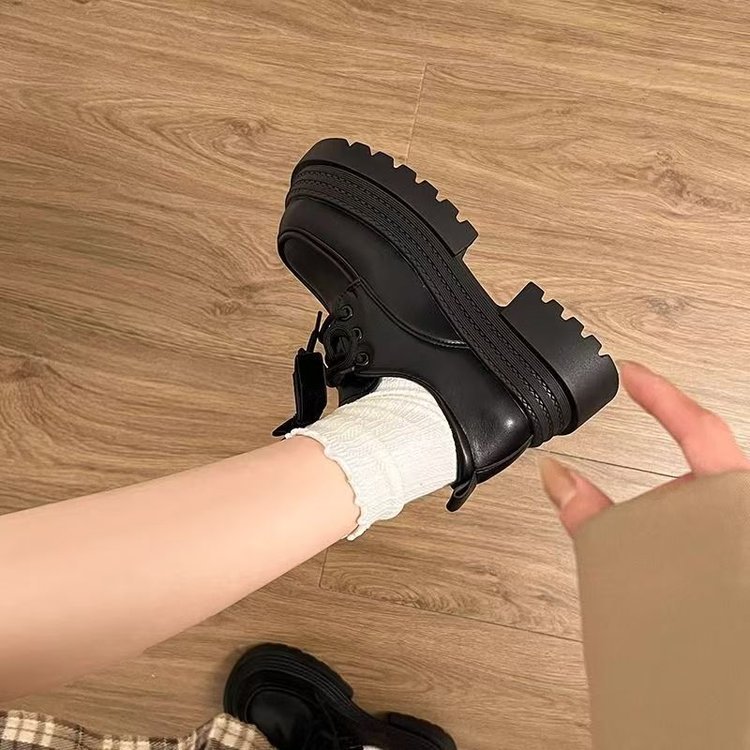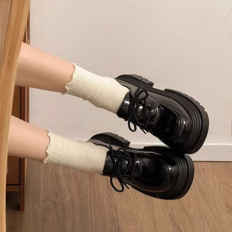 여성 영국식 두꺼운 밑창 로퍼 2025 봄 새로운 올 매치 특허 가죽 레이스 업 블랙 JK 싱글 레이어 신발