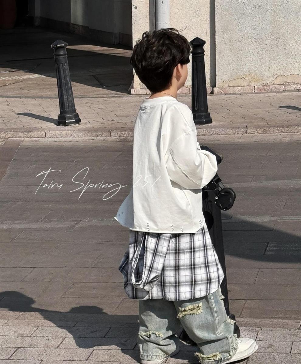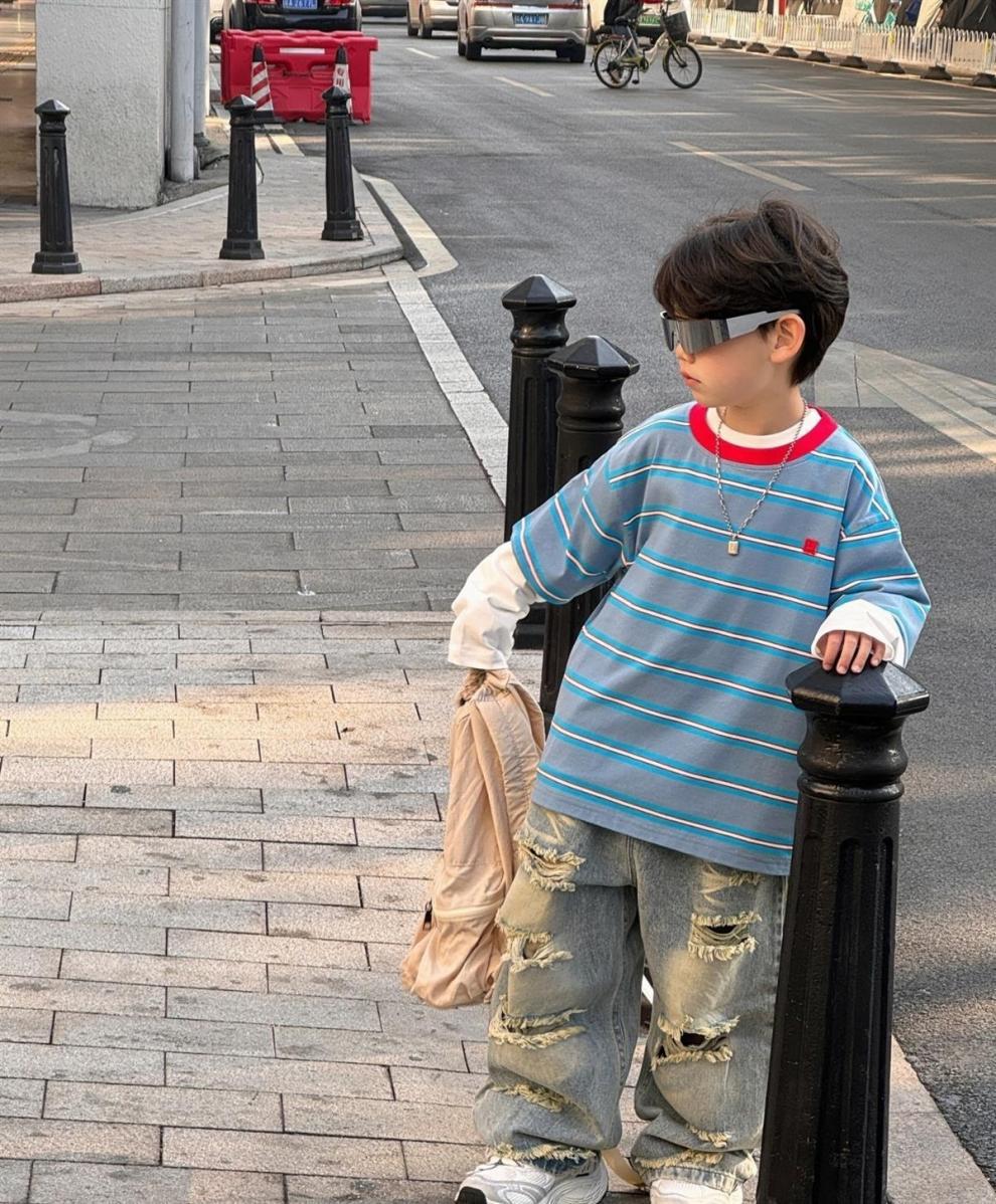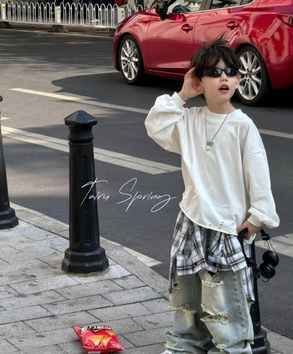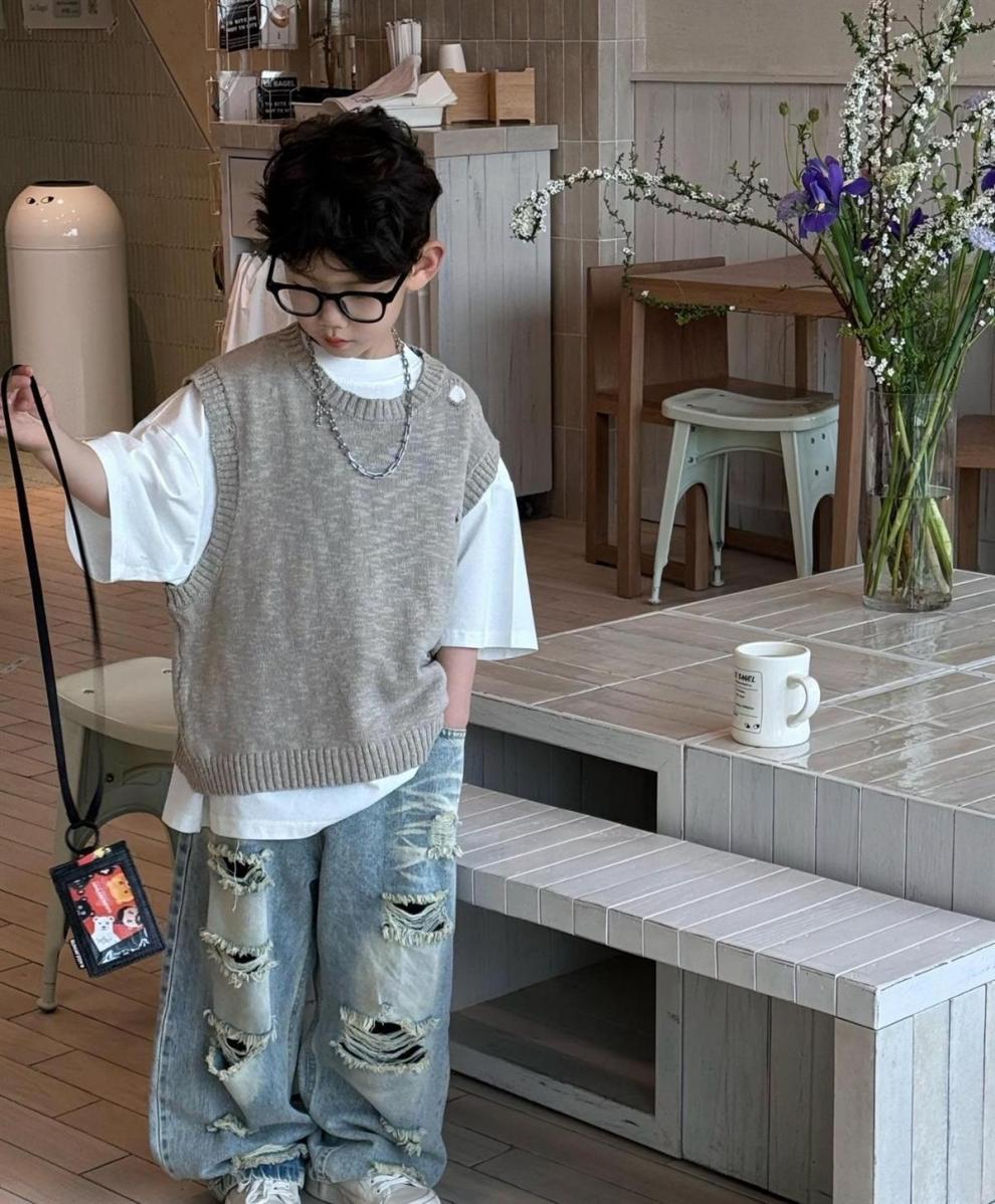 멋진 봄 새로운 한국 스타일 소년 복고풍 미국 하이 스트리트 찢어진 청바지 아동 바지 유행스토어 가기