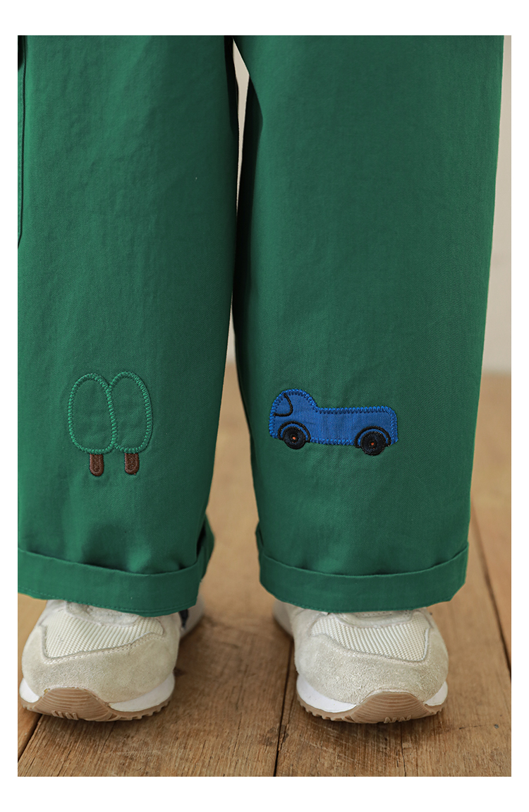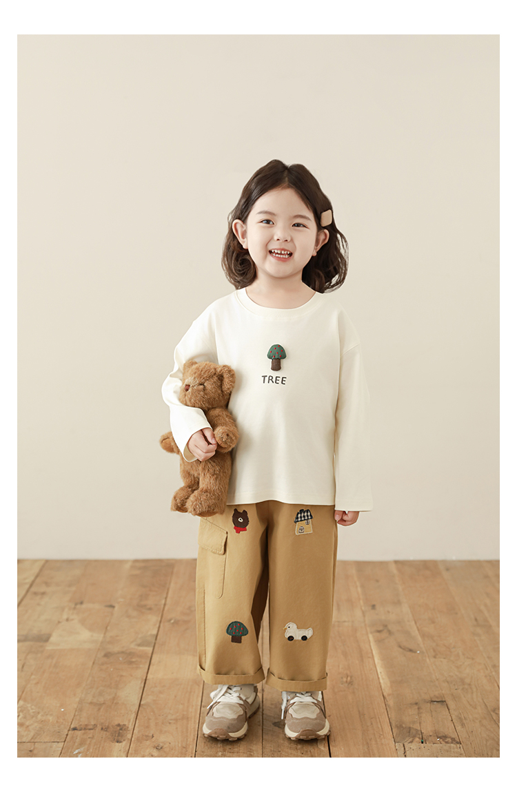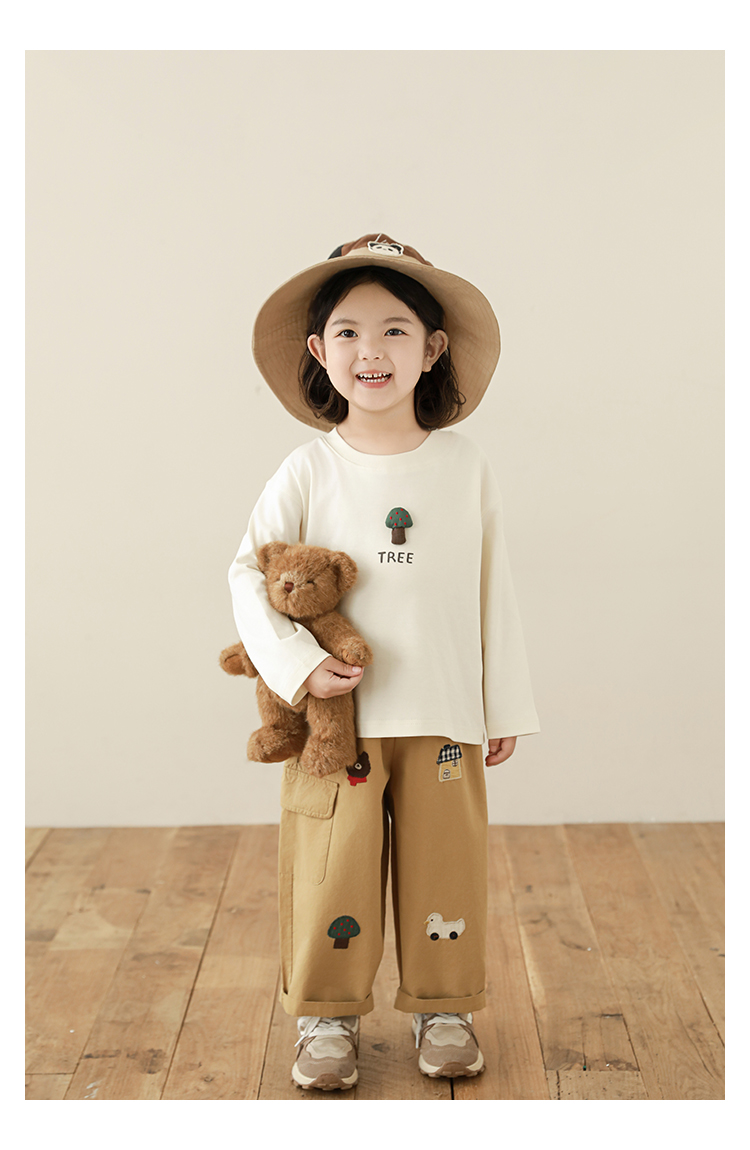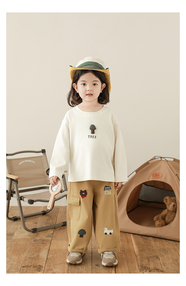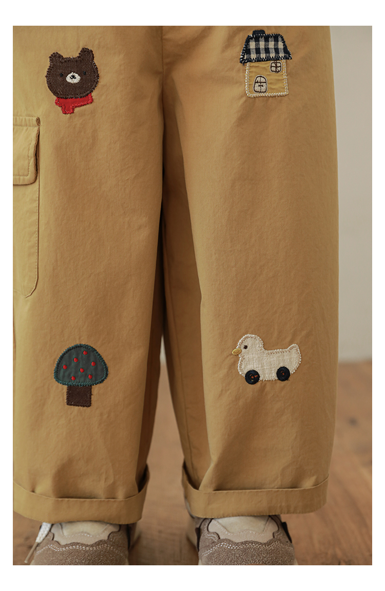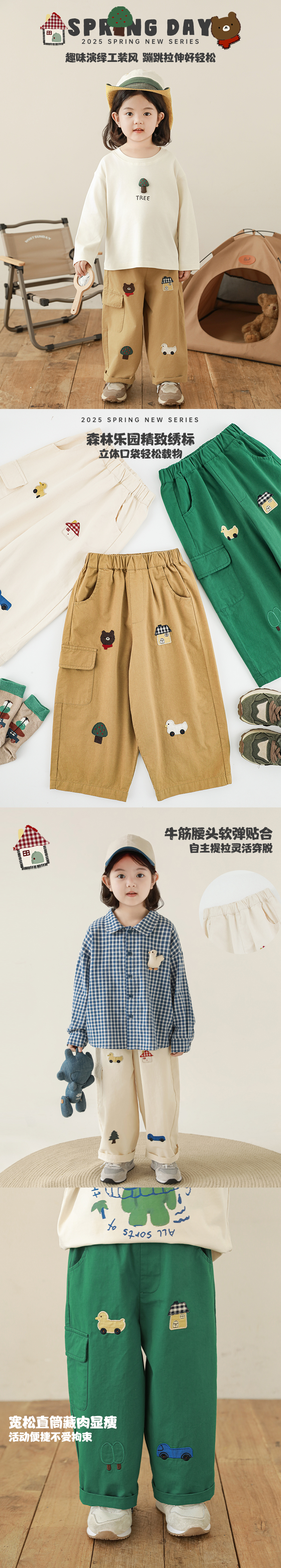 Wuri Boo Girl's Pants 2025 봄 새로운 느슨한 스트레이트 오버alls 숲 파라다이스 어린이 트렌디 바지스토어 가기