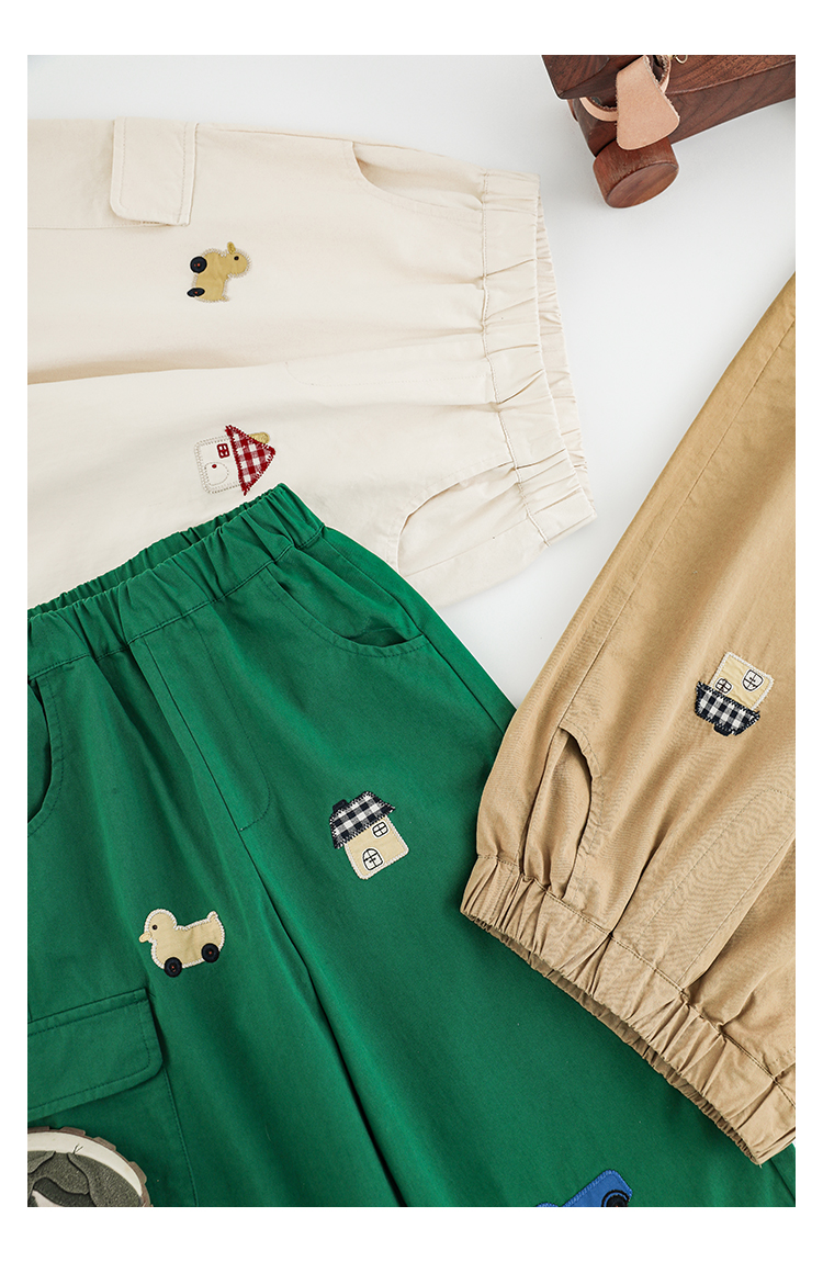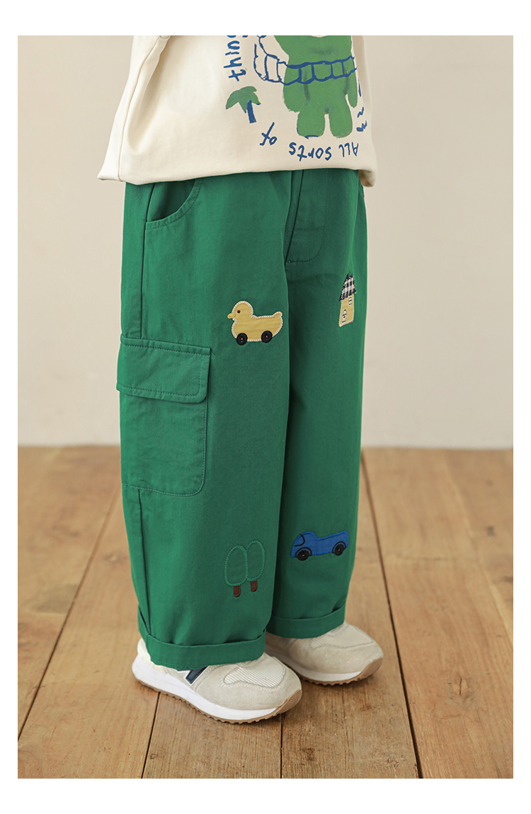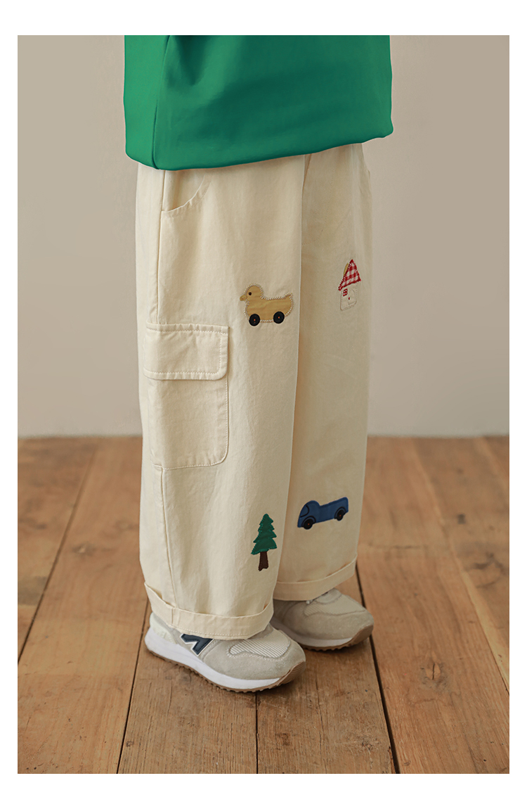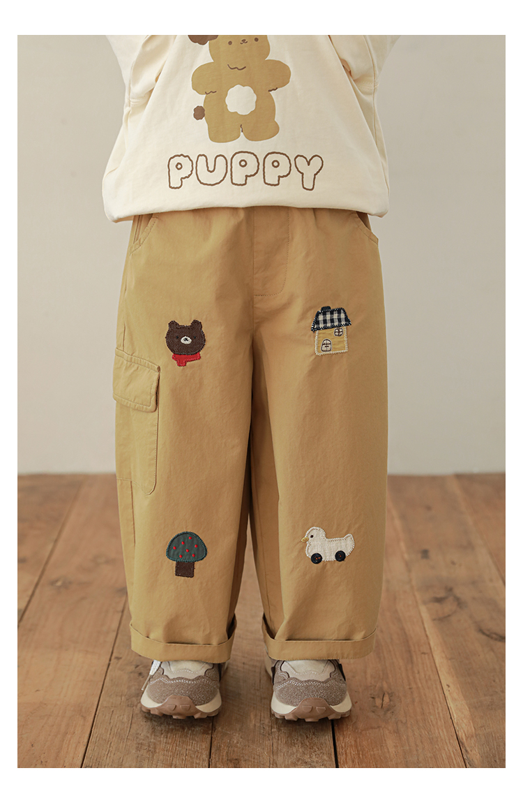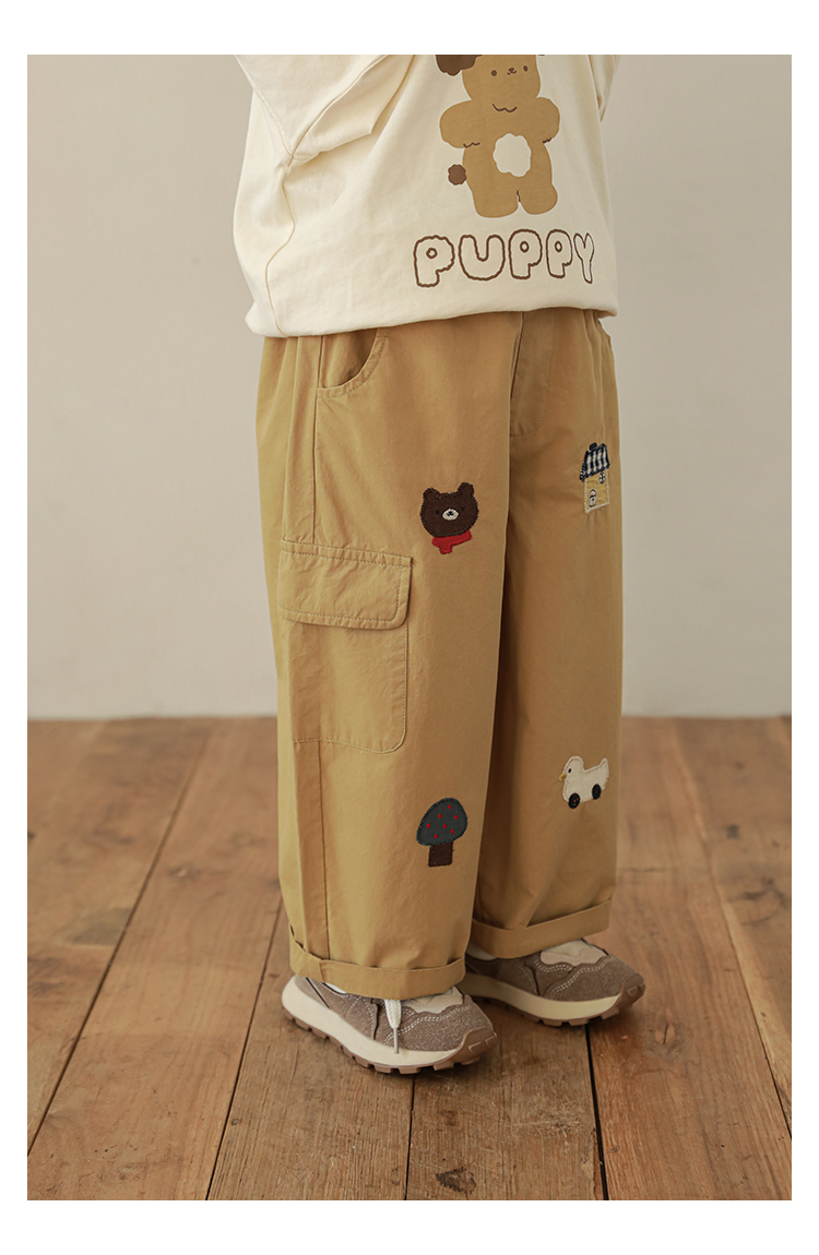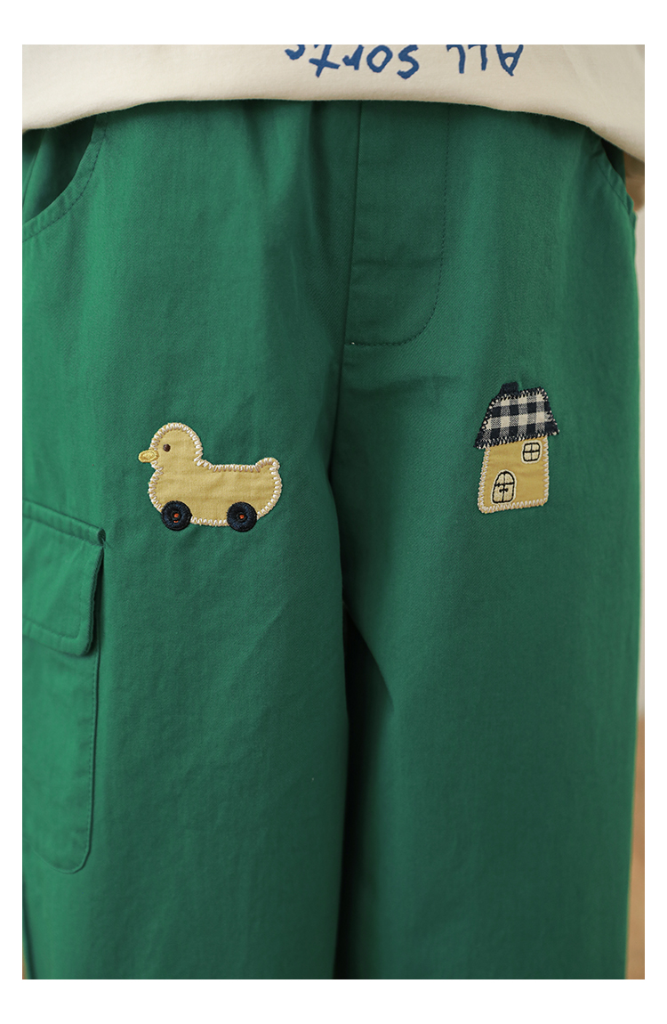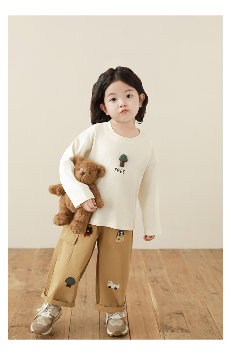 Wuri Boo Girl's Pants 2025 봄 새로운 느슨한 스트레이트 오버alls 숲 파라다이스 어린이 트렌디 바지스토어 가기