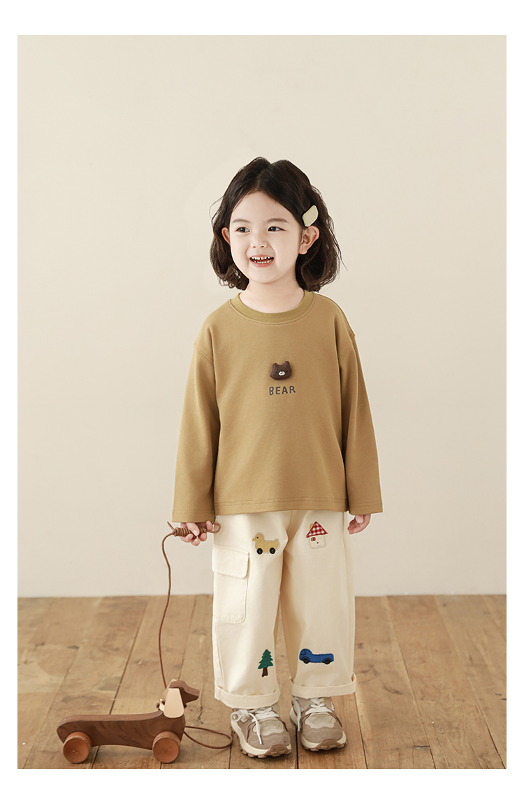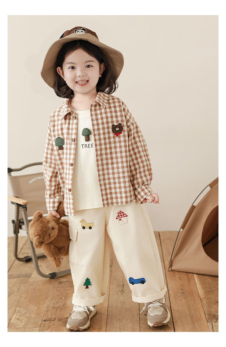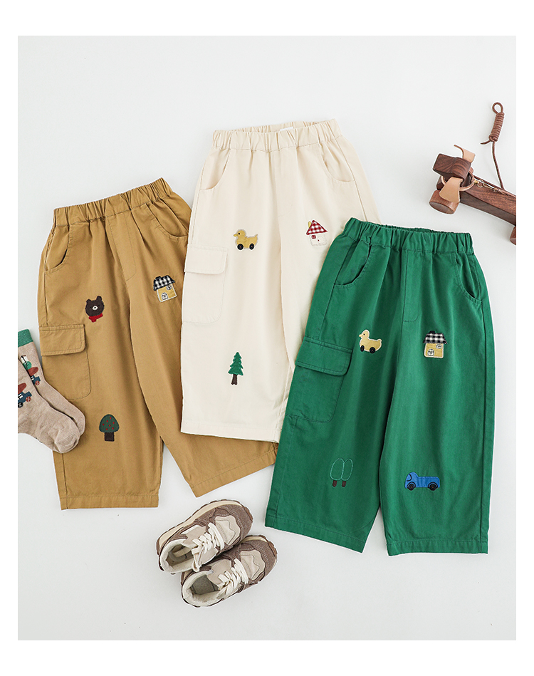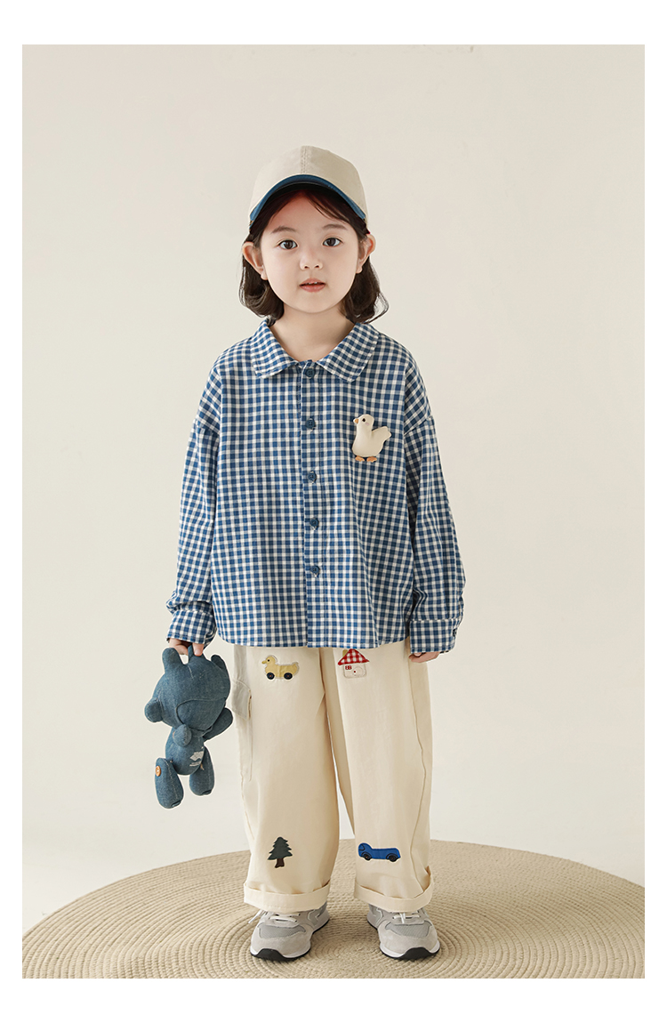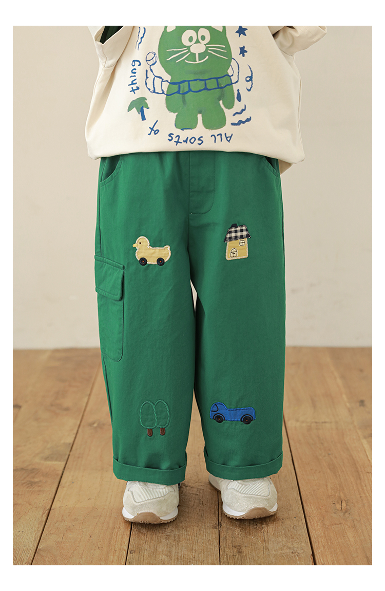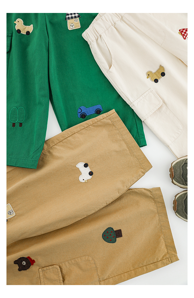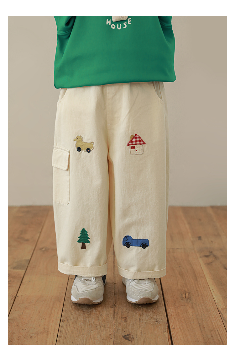 Wuri Boo Girl's Pants 2025 봄 새로운 느슨한 스트레이트 오버alls 숲 파라다이스 어린이 트렌디 바지스토어 가기