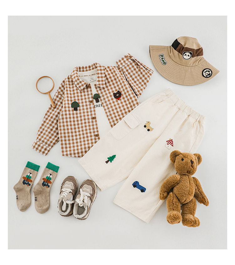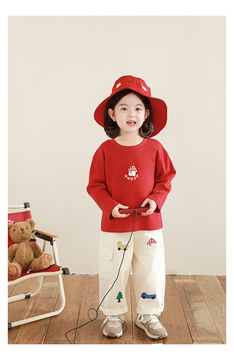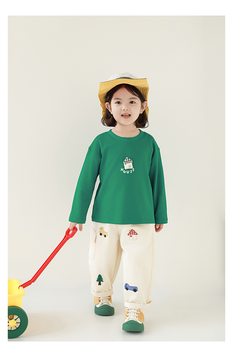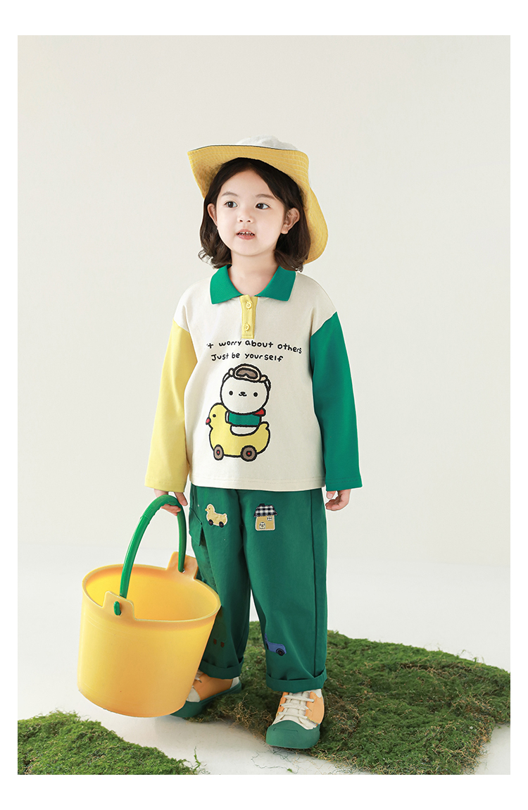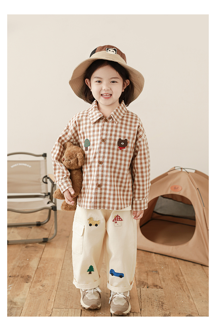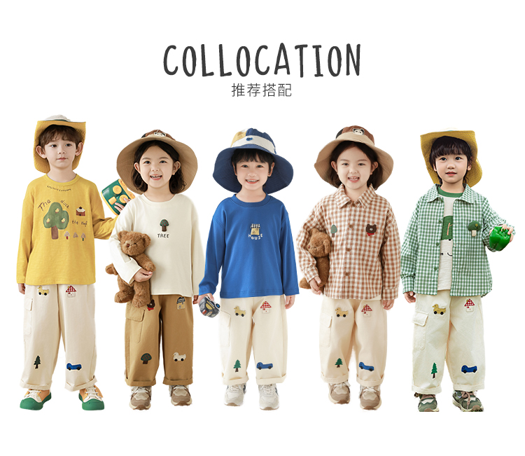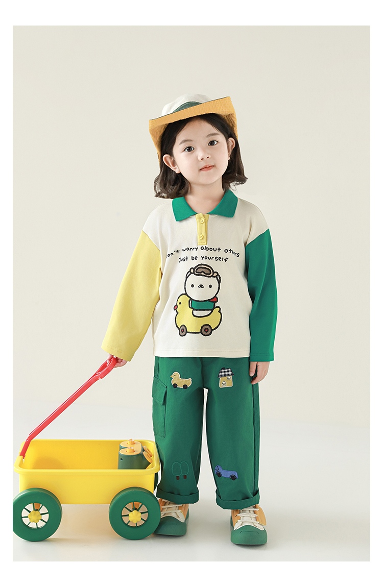 Wuri Boo Girl's Pants 2025 봄 새로운 느슨한 스트레이트 오버alls 숲 파라다이스 어린이 트렌디 바지스토어 가기