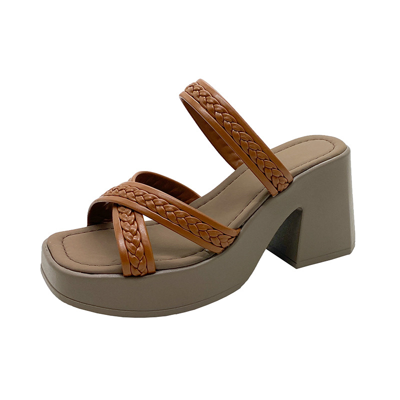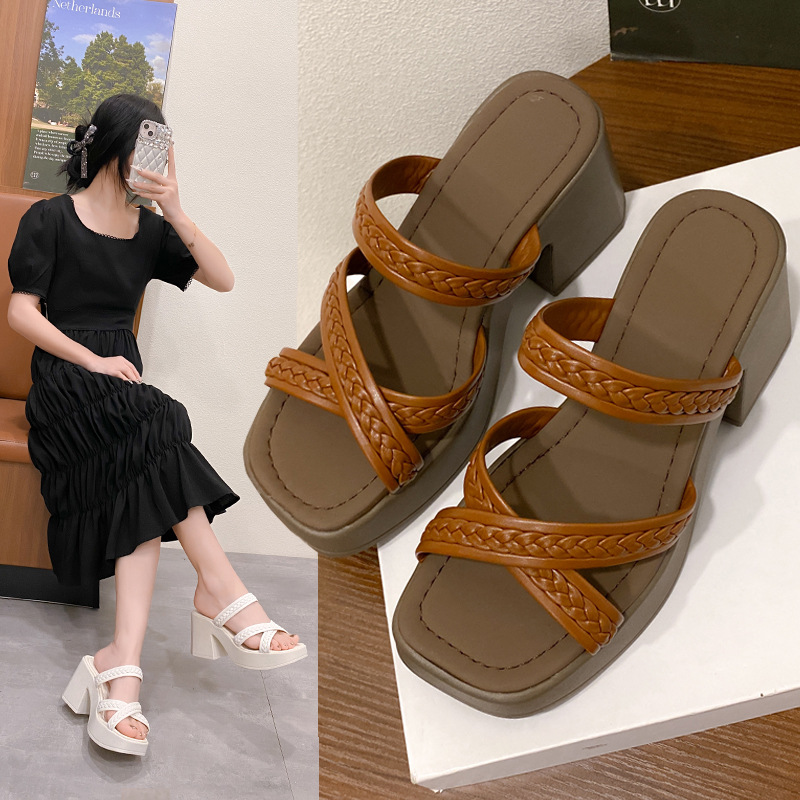 2025 여름 새로운 인터넷 Celebrous coarse heelled 두꺼운 단독 복장 패션 샌들 여성 유럽과 미국의 대외 무역 플러스 사이즈 하이힐 여성 신발 트렌디스토어 가기