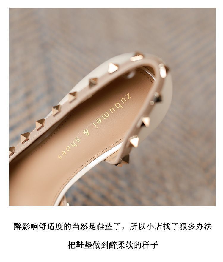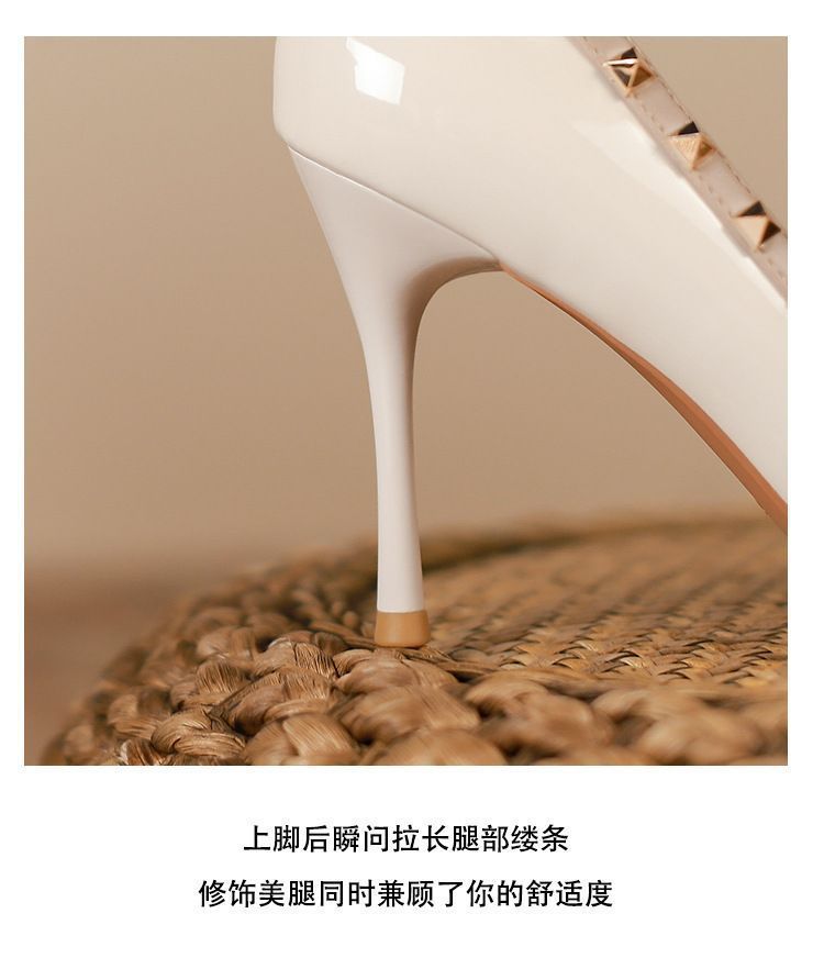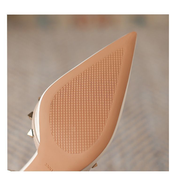 얕은 리벳 하이힐 2024 새로운 올 매치 폭발 플랫 페이턴트 가죽 사이드 빈 섹시한 프렌치 뾰족한 싱글 슈즈스토어 가기