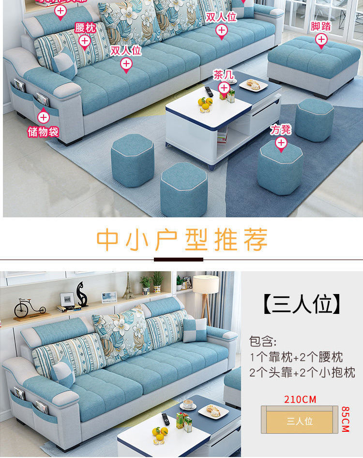 Linerbang 가구 북유럽 직물 소파 작은 아파트 임대 집 전체 세트 거실 간단한 현대 이동식 빨스토어 가기