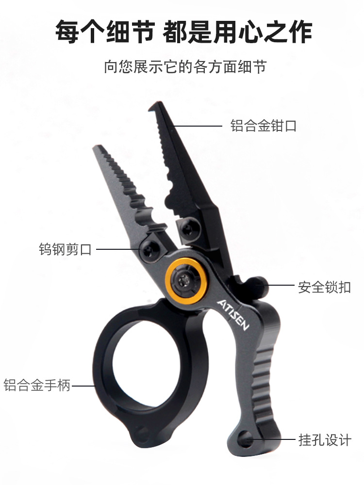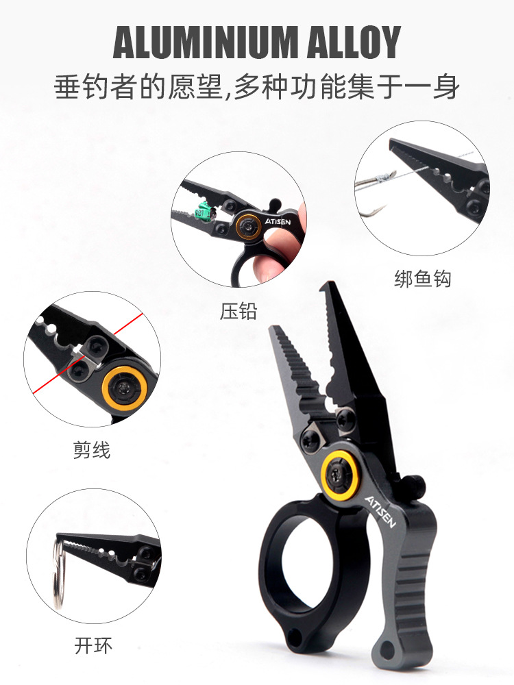 공장 재고 새로운 제품 알루미늄 합금 펜치 잠금 미니 도로 아시아 펜치 오픈 루프 커터 낚시 라인 절단 링 펜치