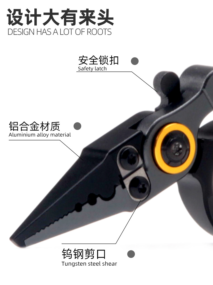 • 후크가 있는 레이크 블루 블랙 큰 배꼽 알루미늄 합금 펜치 + PP 포장