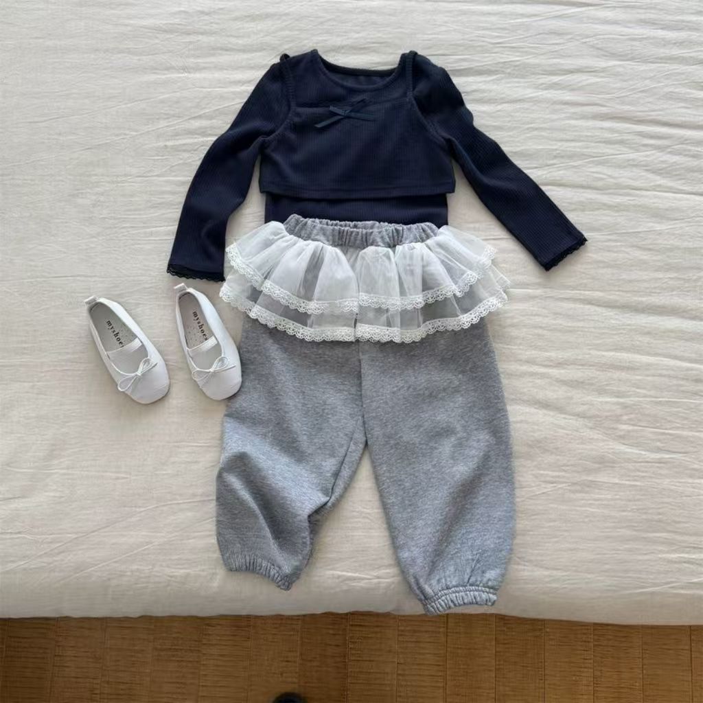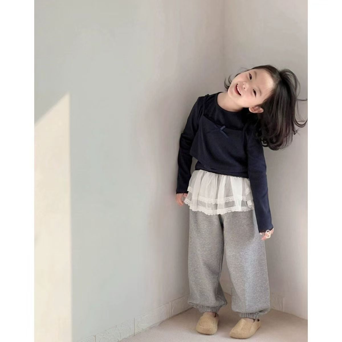 2025 봄 새 여자 정말 조커 메쉬 스커트 방귀 커튼 바지 캐주얼 바지 조끼 세트 한국 버전